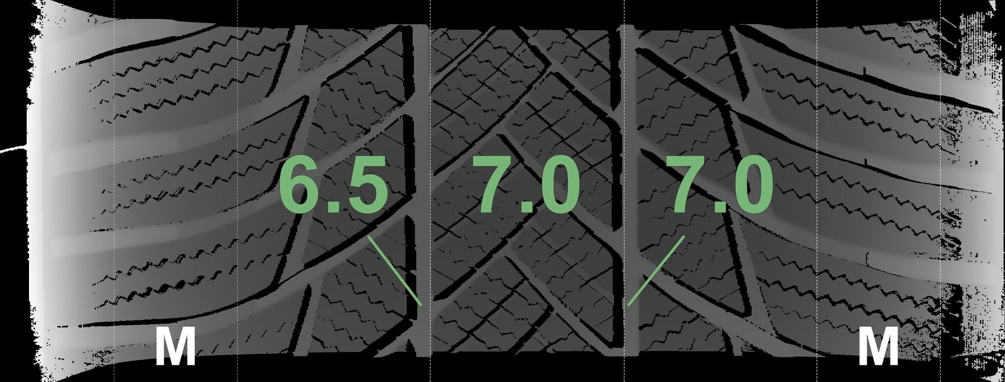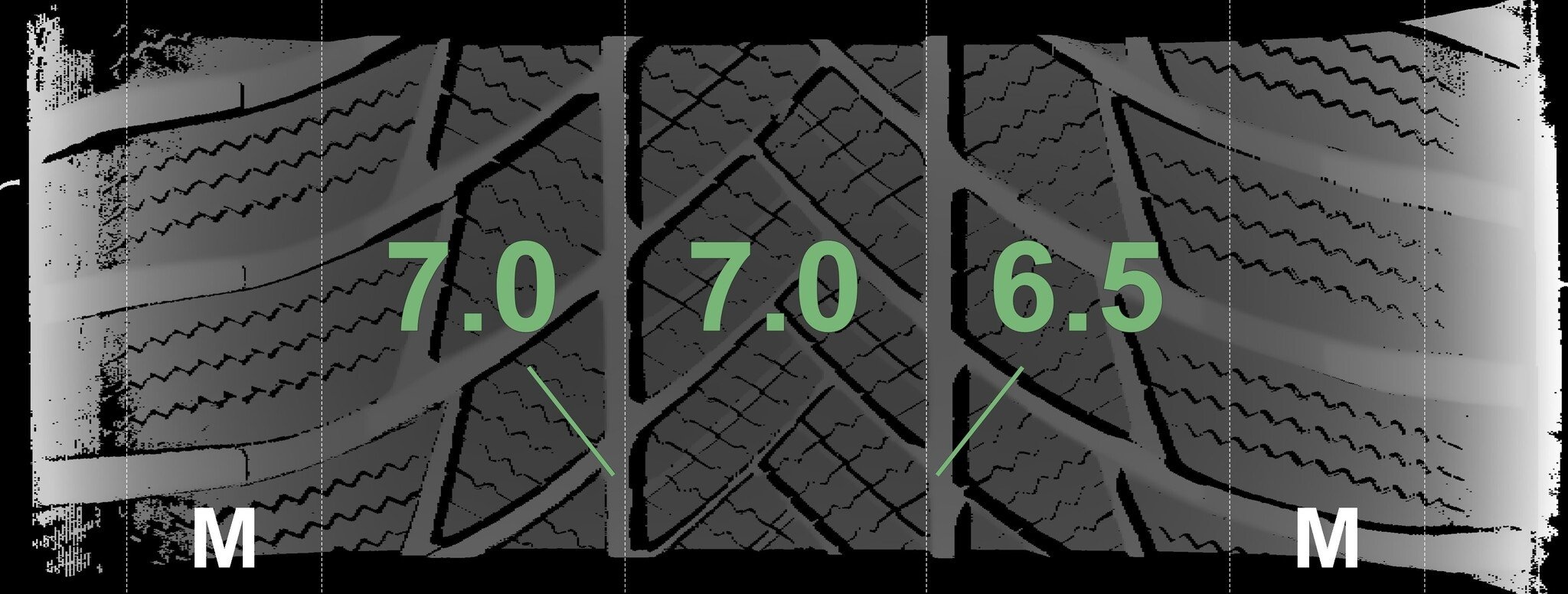 Die gemessenen Profiltiefen und Details zu den Felgen sind oben abgebildet.