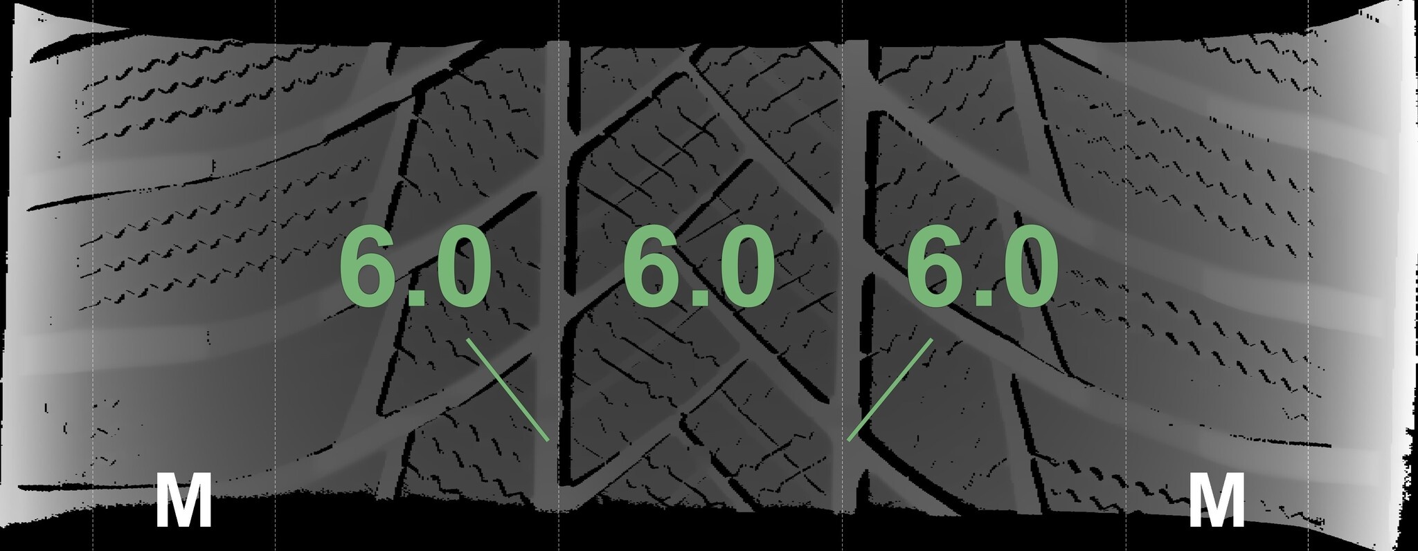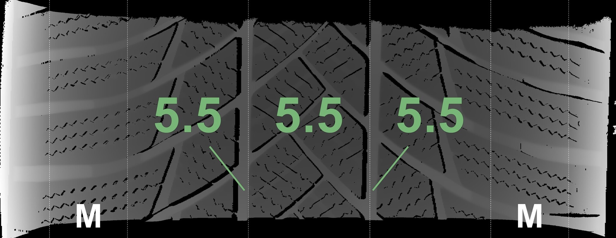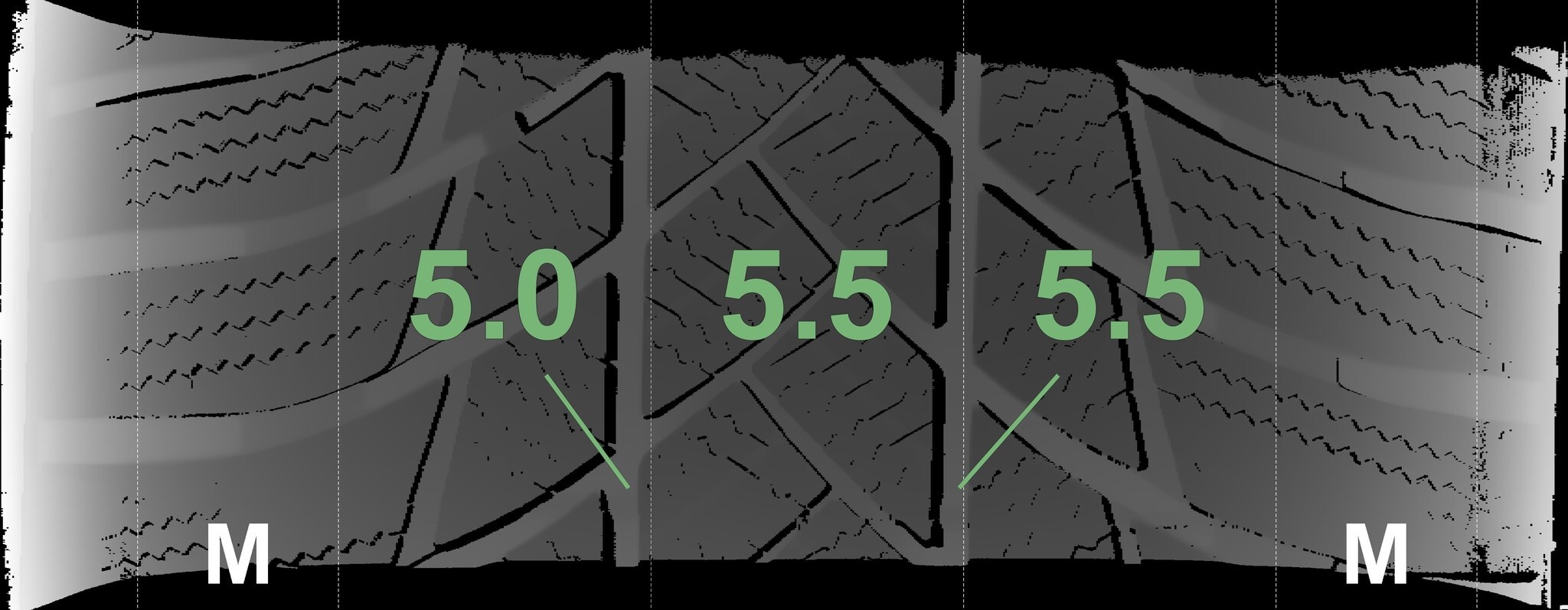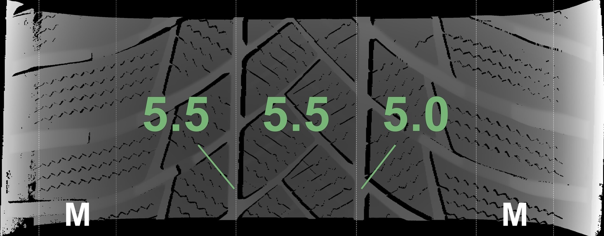 Die gemessenen Profiltiefen und die Details der Felgen sind oben dargestellt.