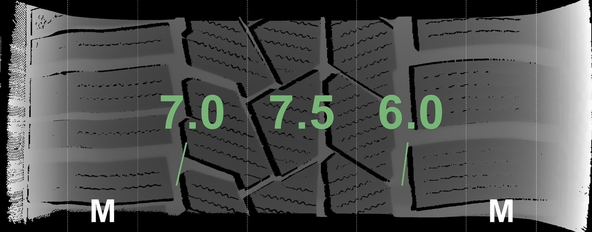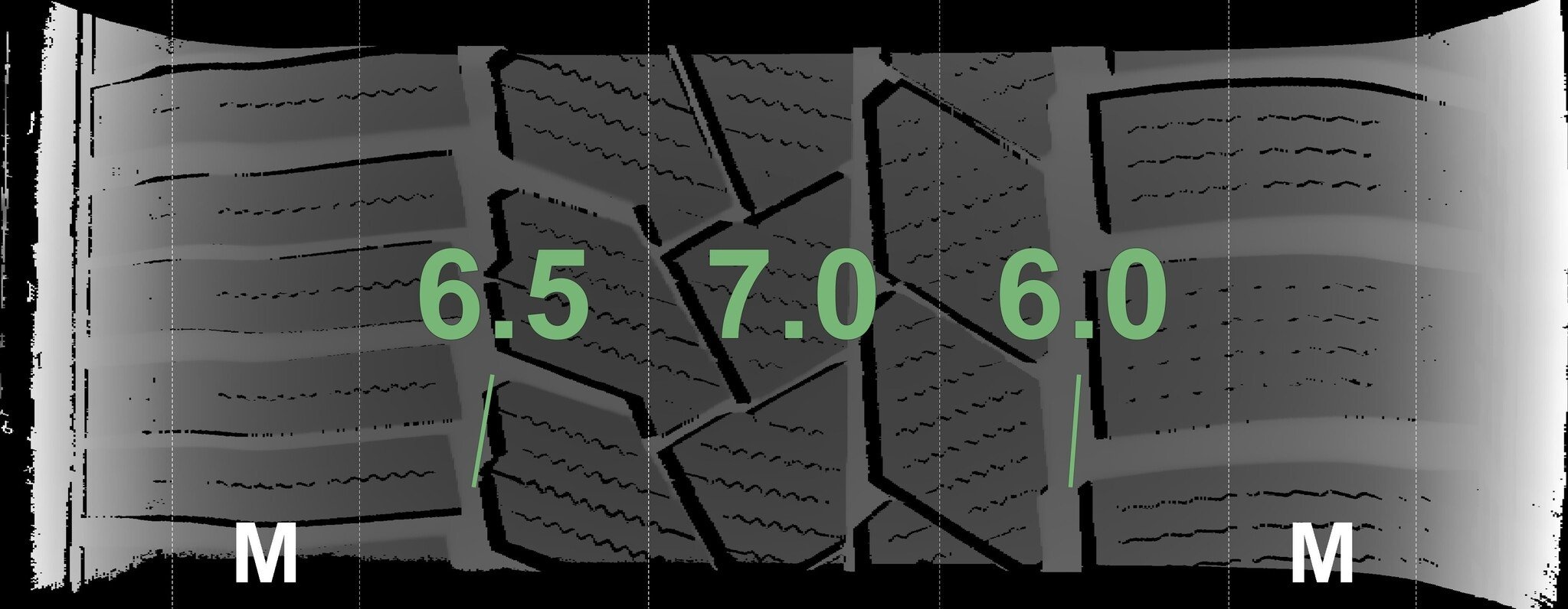 | Zustand | Profiltiefe | DOT | Vorderachse Links | Gebraucht | 6,5 mm | 2522 |