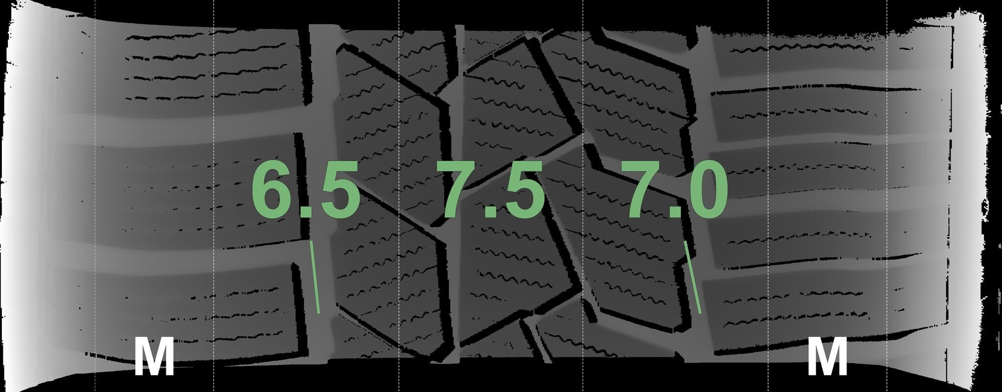 Die gemessenen Profiltiefen und Details zu den Felgen sind oben abgebildet.