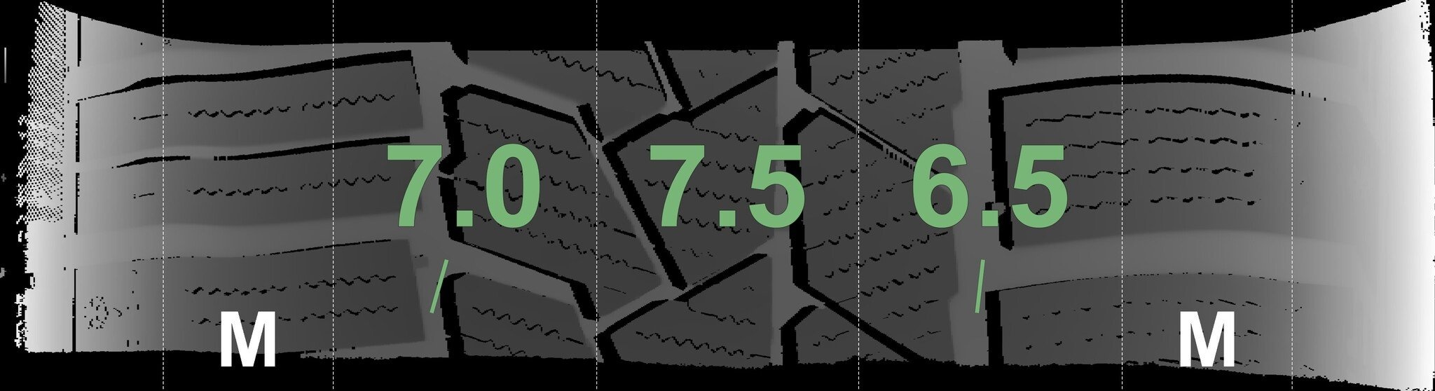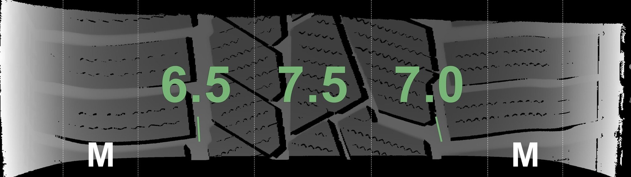 Die gemessenen Profiltiefen und die Details der Felgen sind oben angezeigt.