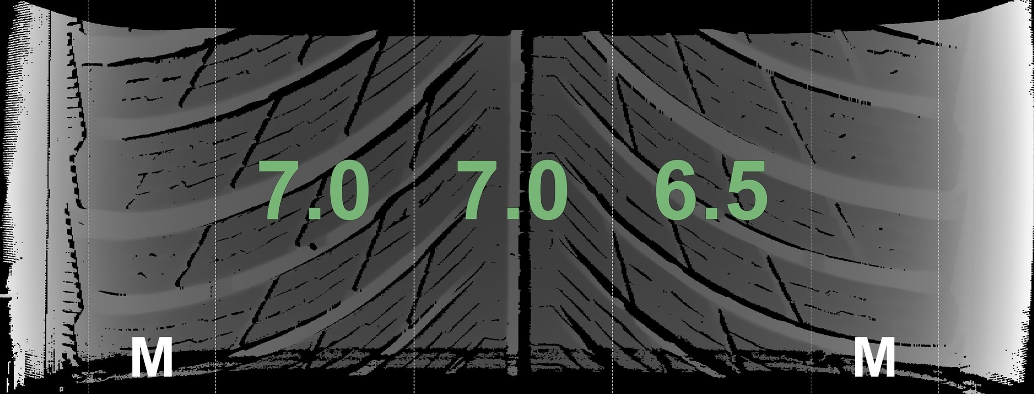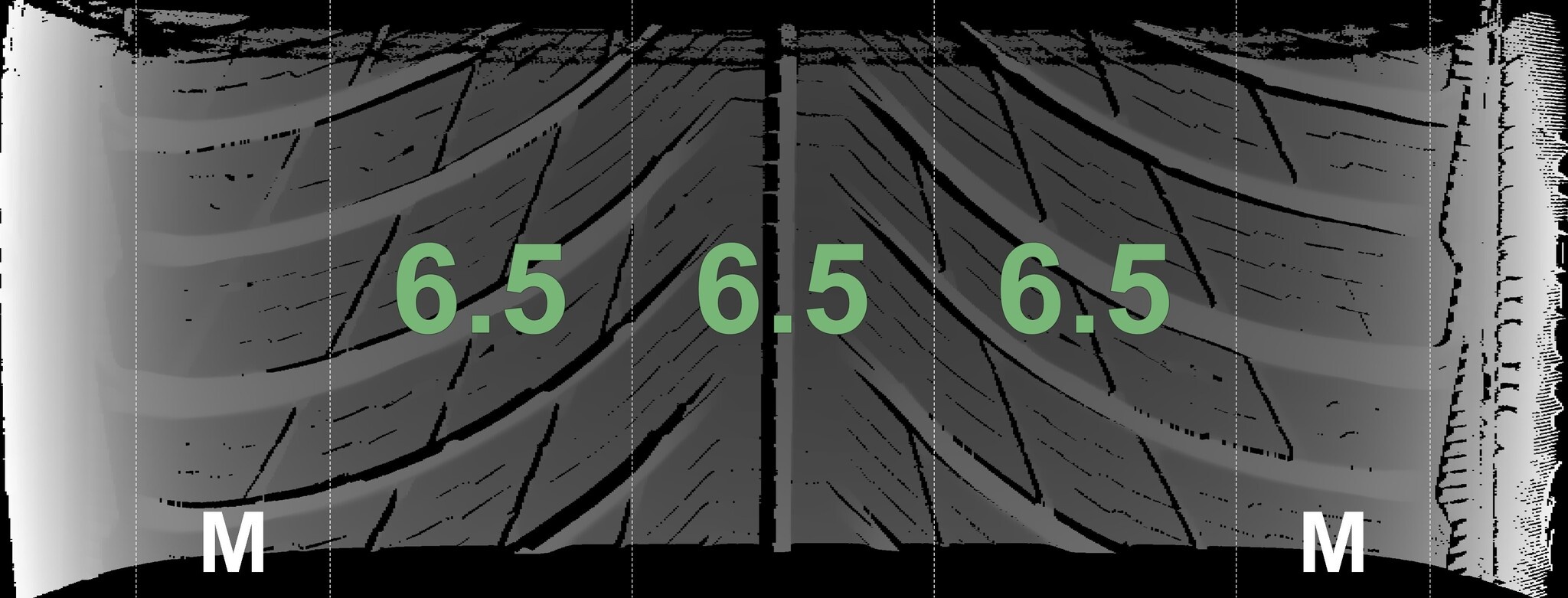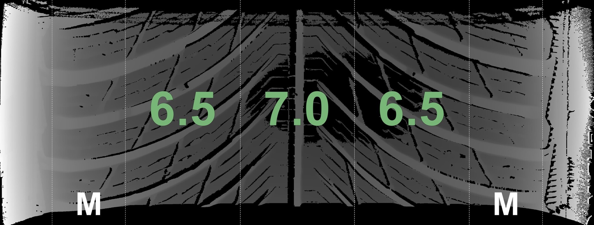 | Zustand | Profiltiefe | DOT | Hinterachse Rechts | Gebraucht | 6.5 mm | 1121 |