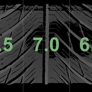 Die gemessenen Profiltiefen und die Details der Felgen sind oben aangegeven.