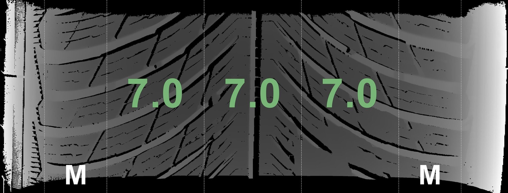 Die gemessenen Profiltiefen und die Details der Felgen sind oben angegeben.