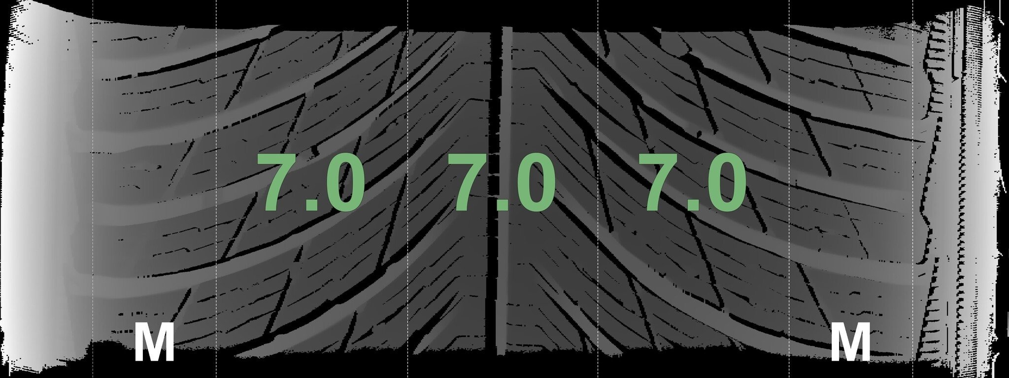 | Zustand | Profiltiefe | DOT | Hinterachse Rechts | Gebraucht | 7.0 mm | 0221 |