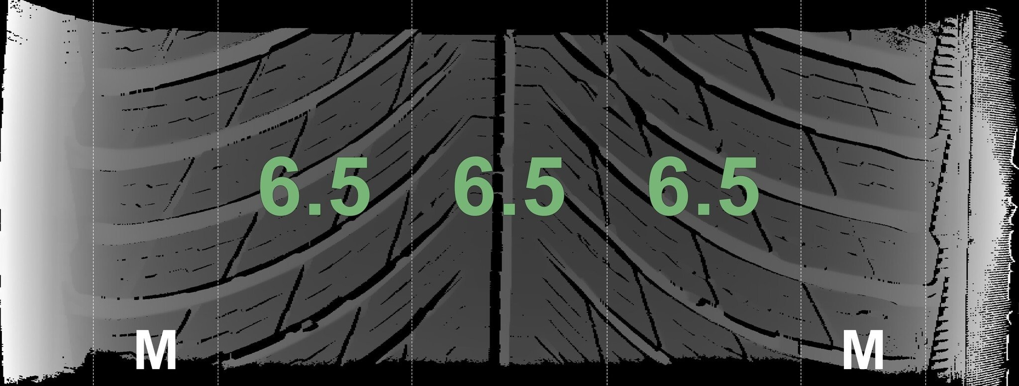 | Zustand | Profiltiefe | DOT | Vorderachse Links | Gebraucht | 6.5 mm | 0221 |