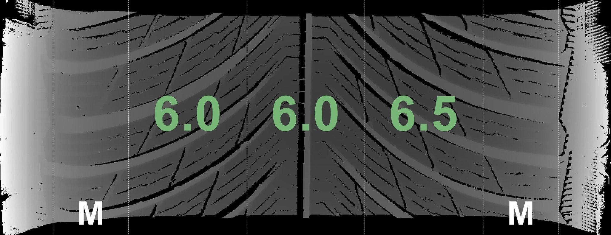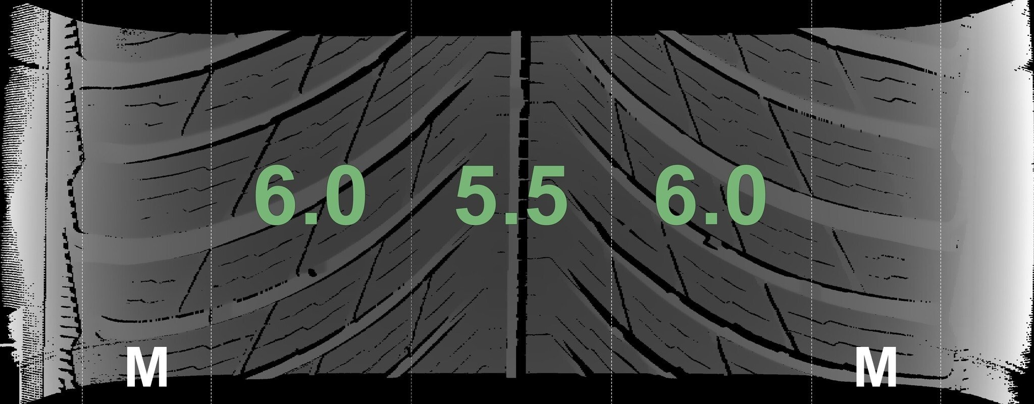 Die gemessenen Profiltiefen und Details zu den Felgen sind oben abgebildet.