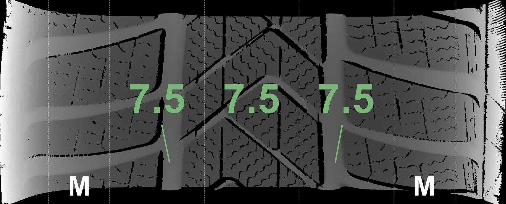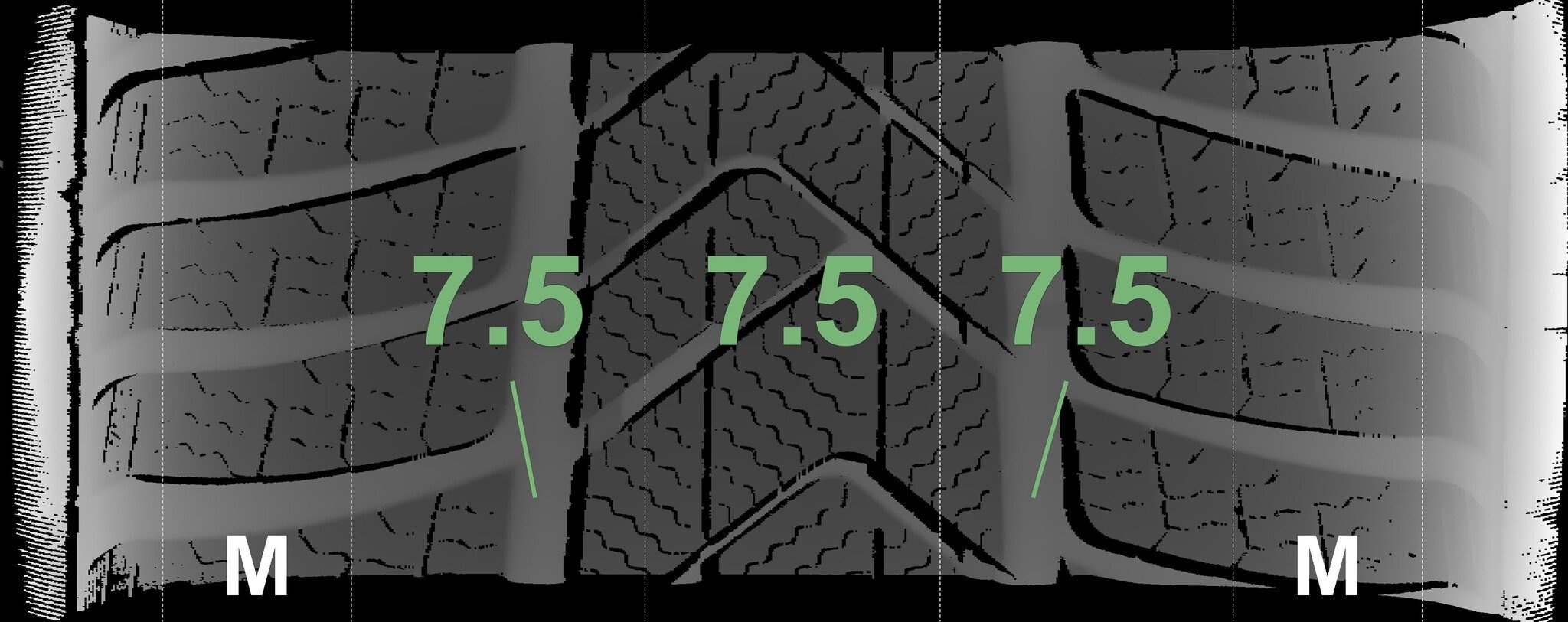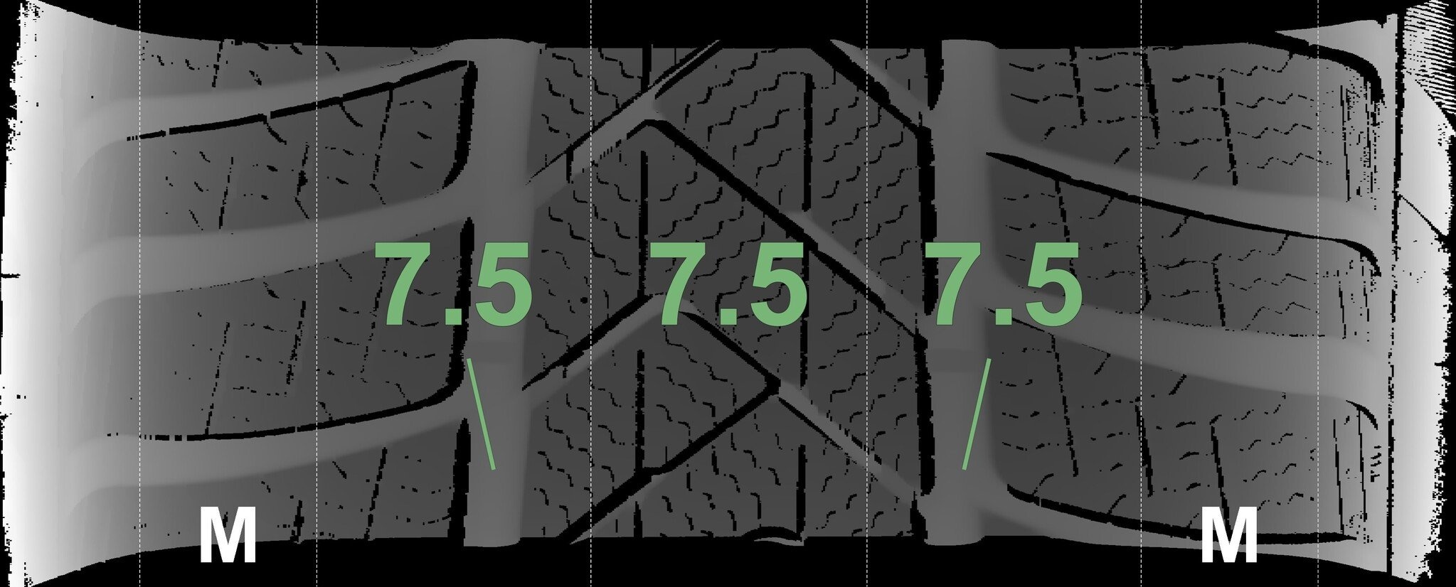 | Zustand | Profiltiefe | DOT | Vorderachse Links | Neu | 7,5 mm | 2522 |