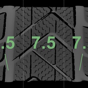 | Zustand | Profiltiefe | DOT | Hinterachse Links | Neu | 7,5 mm | 3922 |