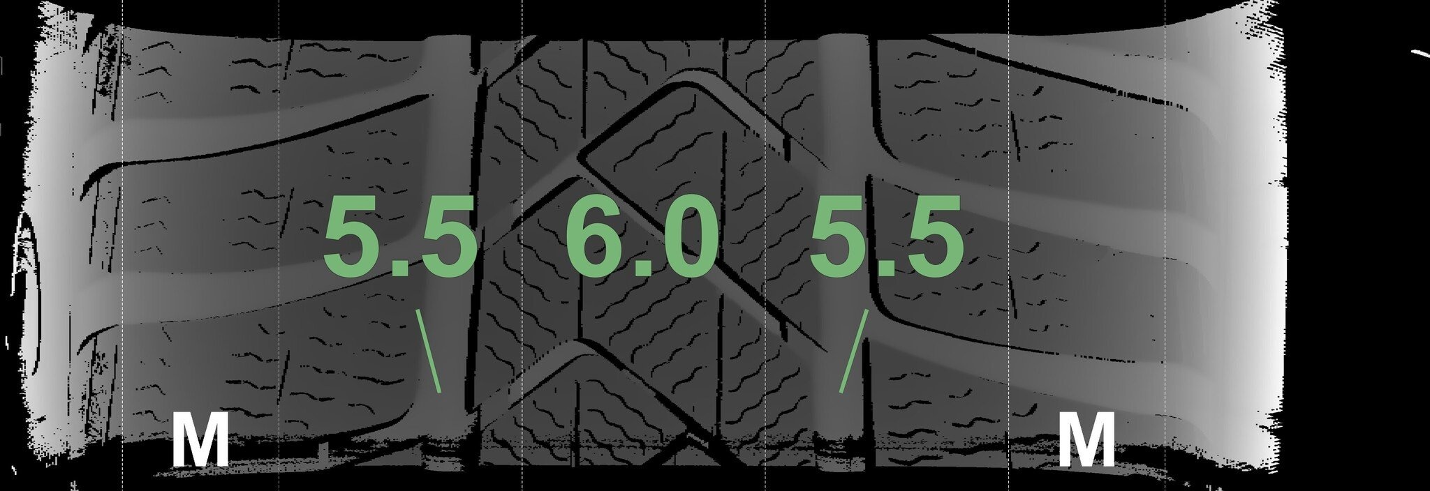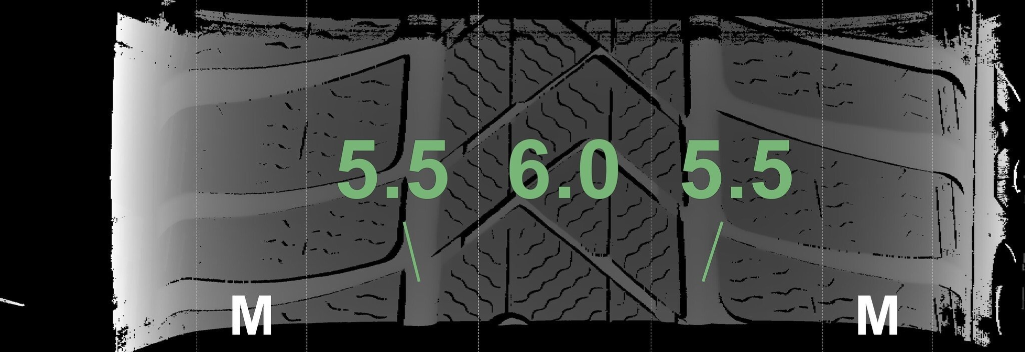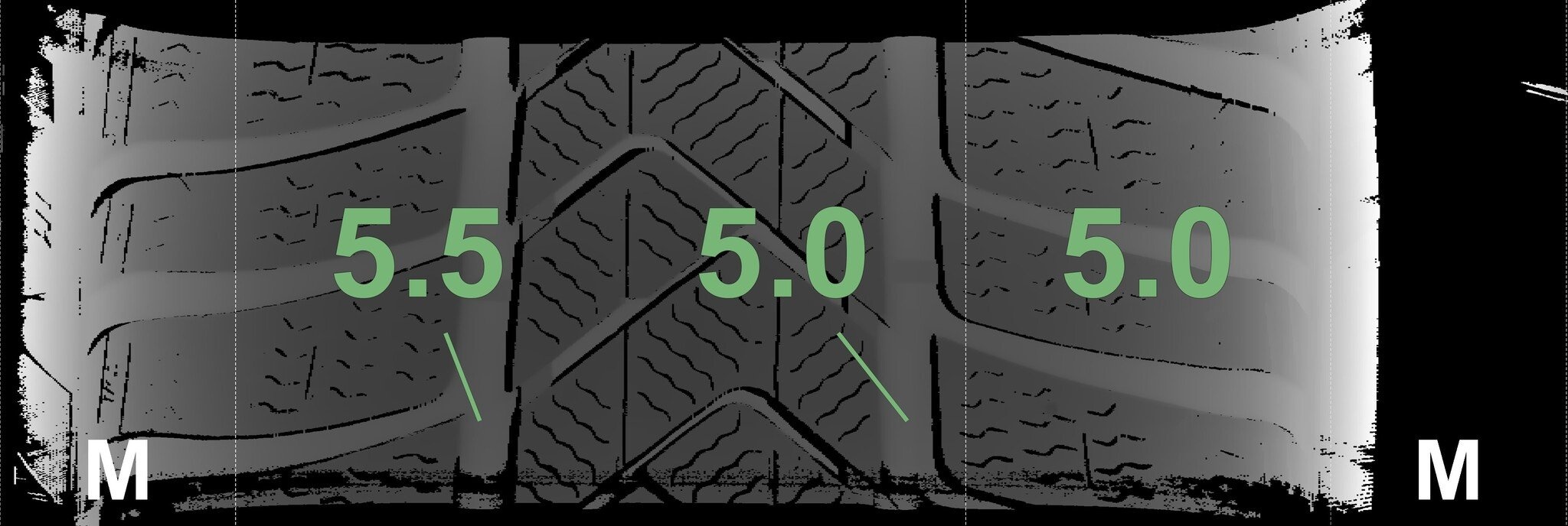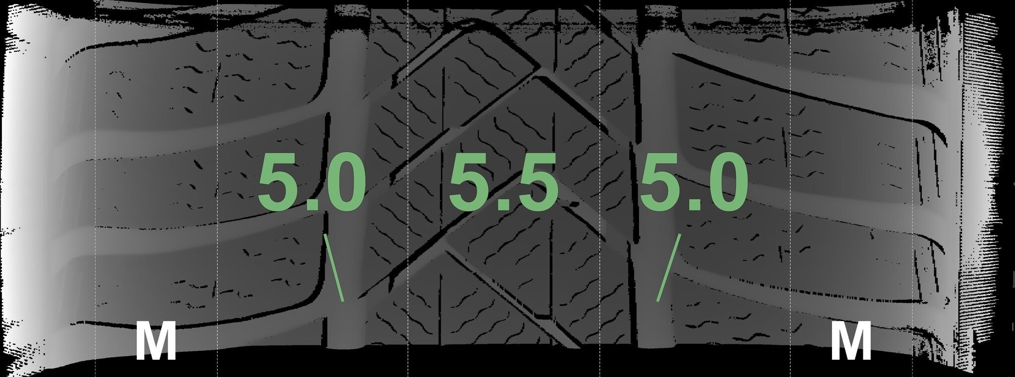 Die gemessenen Profiltiefen und die Details der Felgen sind oben angegeben.