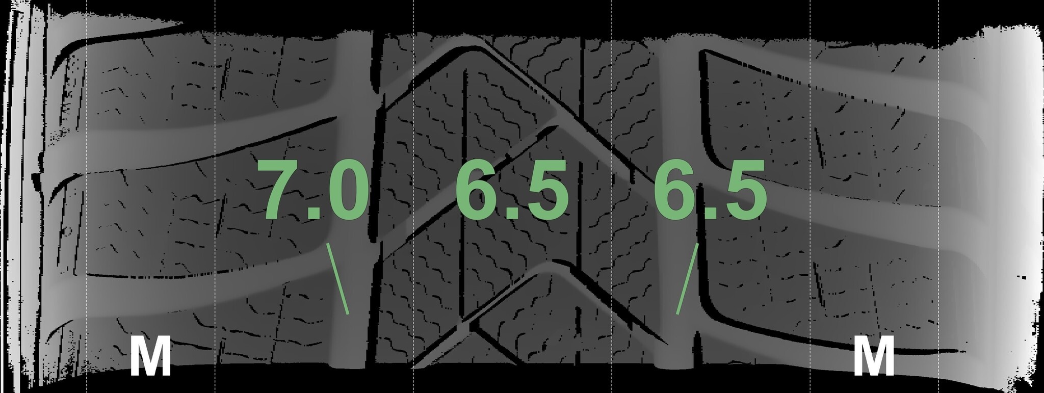 Die gemessenen Profiltiefen und die Details der Felgen sind oben dargestellt.