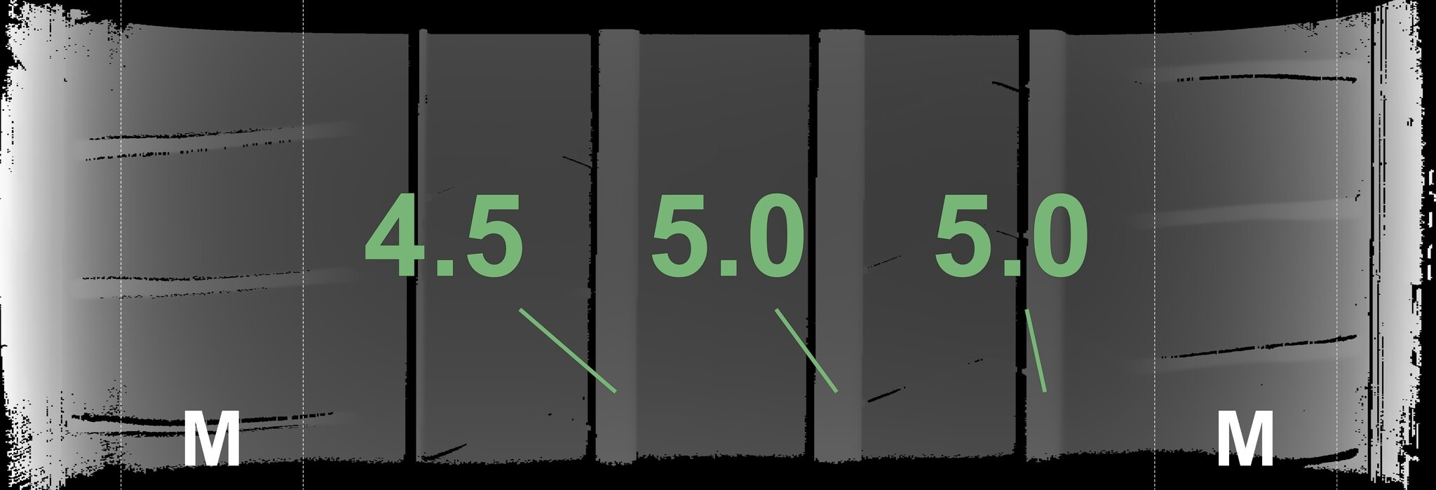 Die gemessenen Profiltiefen und Details zu den Felgen sind oben abgebildet.