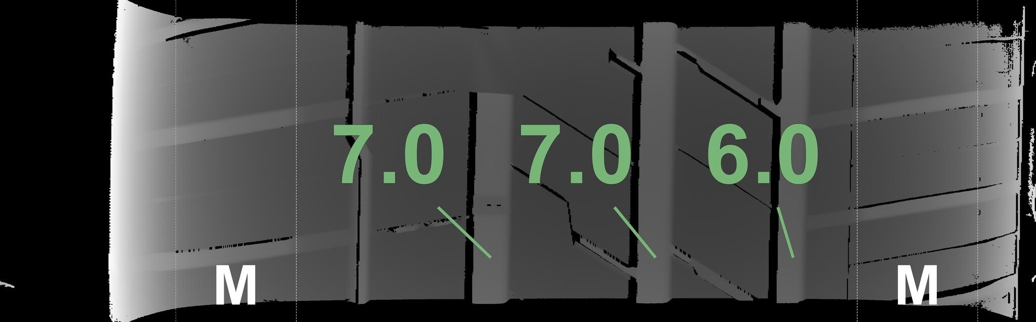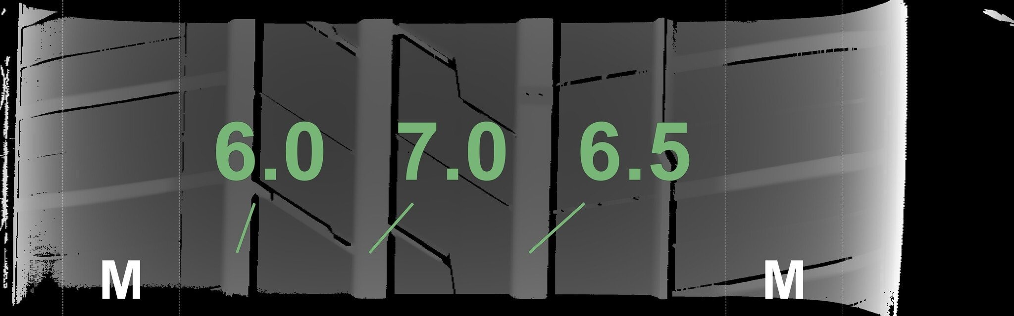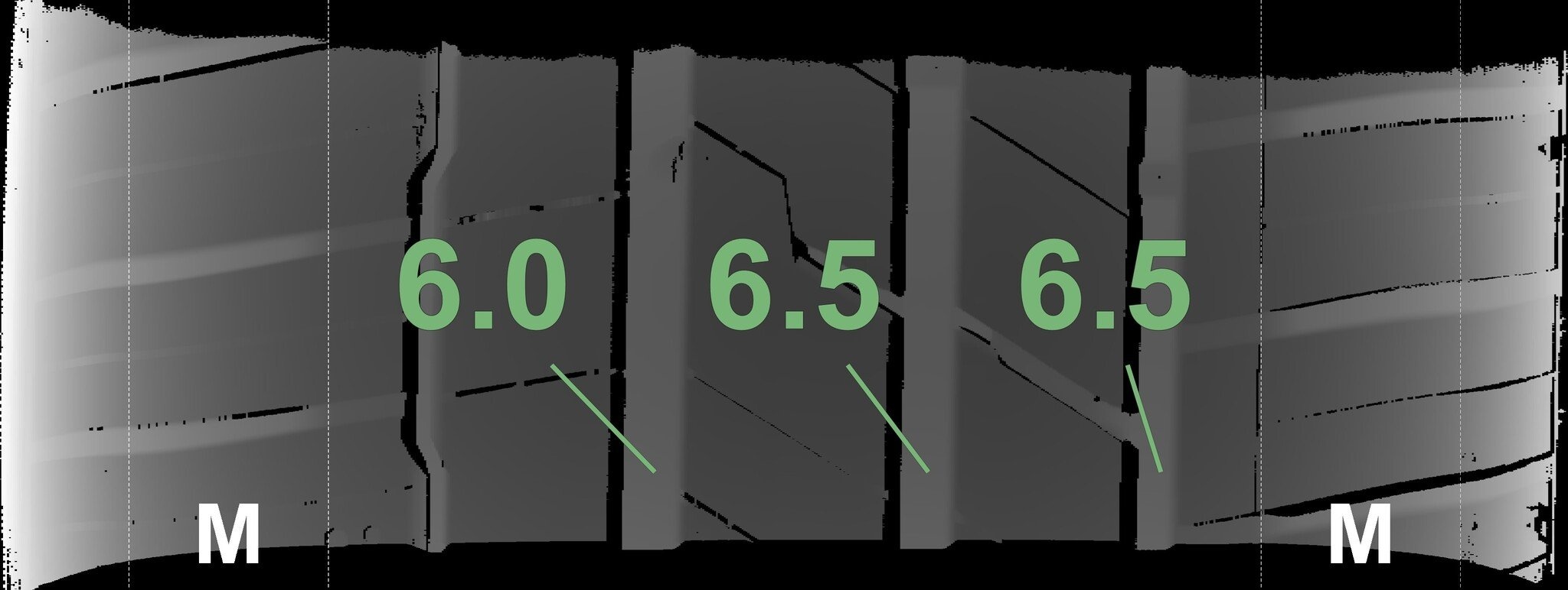 Die gemessenen Profiltiefen und die Details der Felgen sind oben angegeben.