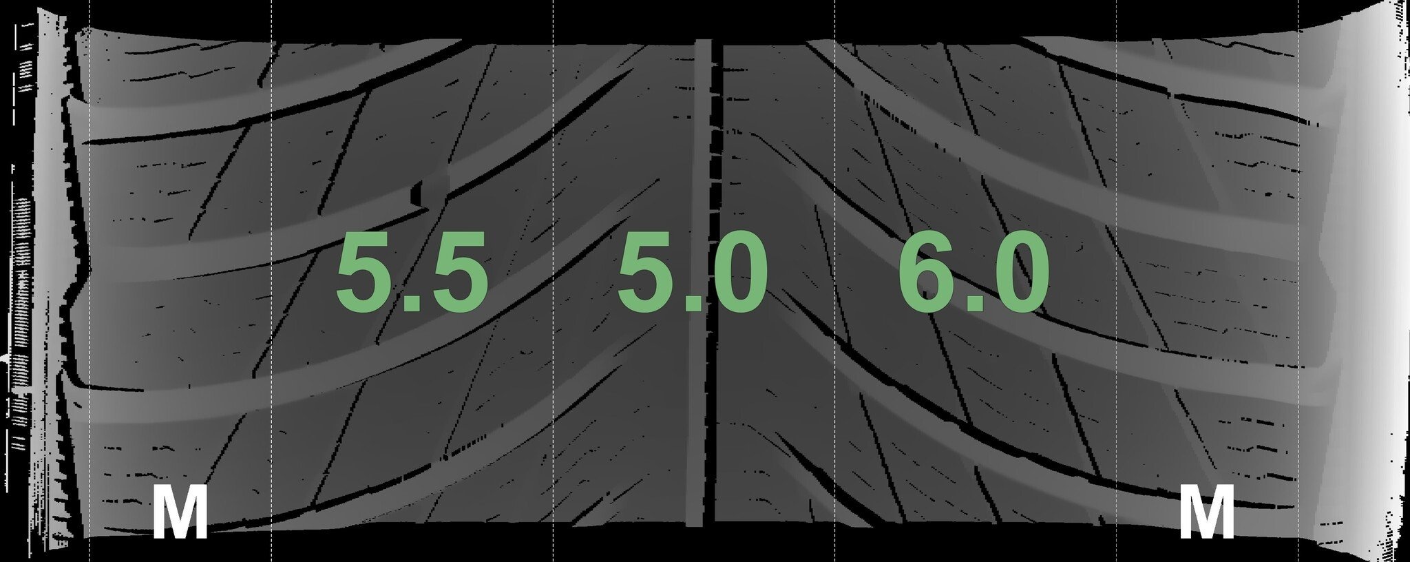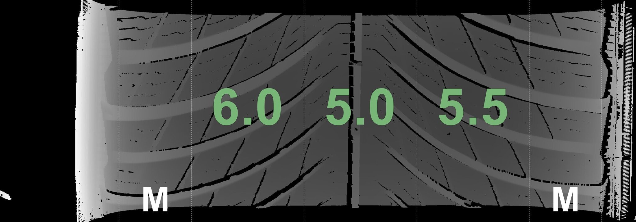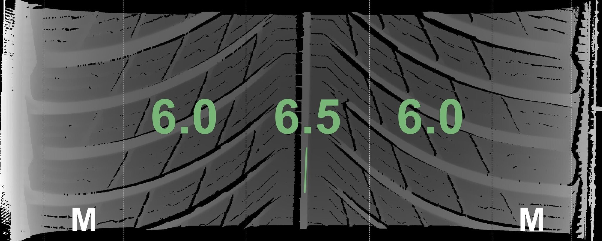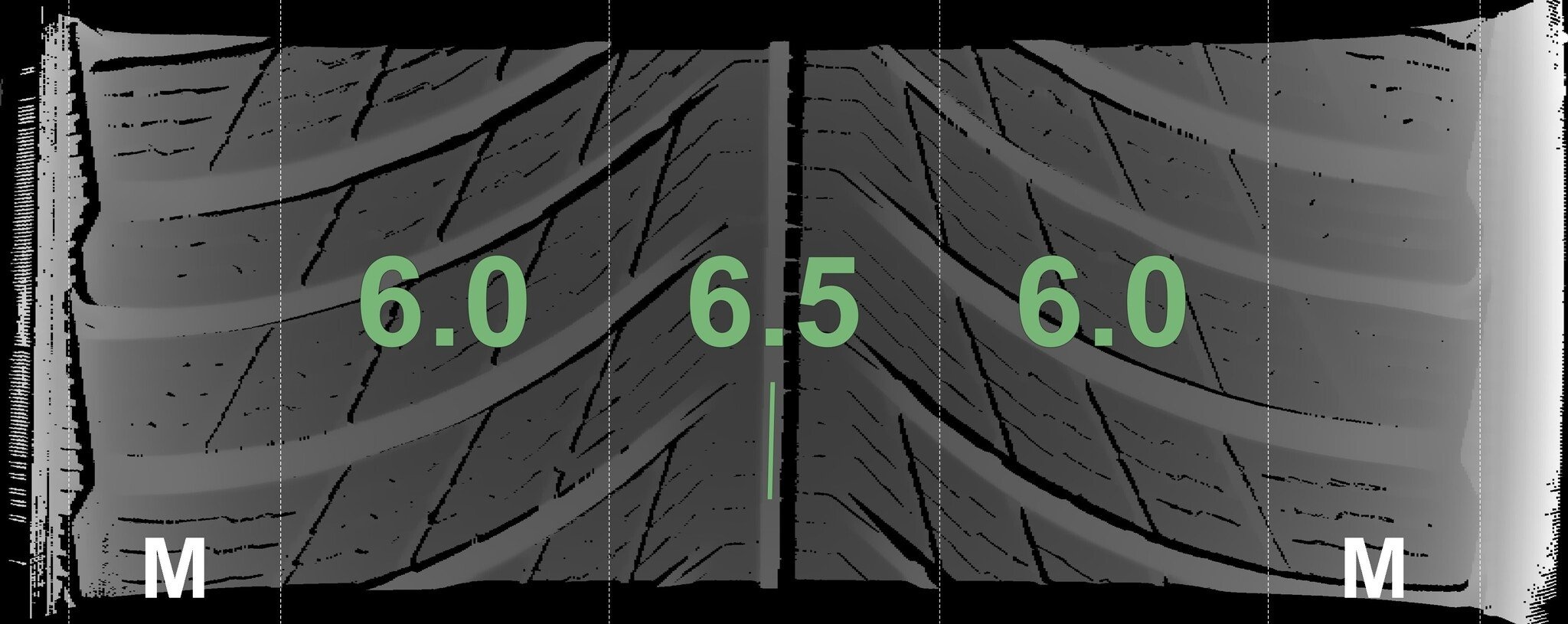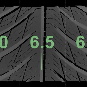 Die gemessenen Profiltiefen und die Details der Felgen sind oben dargestellt.