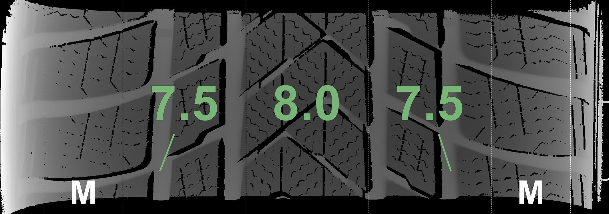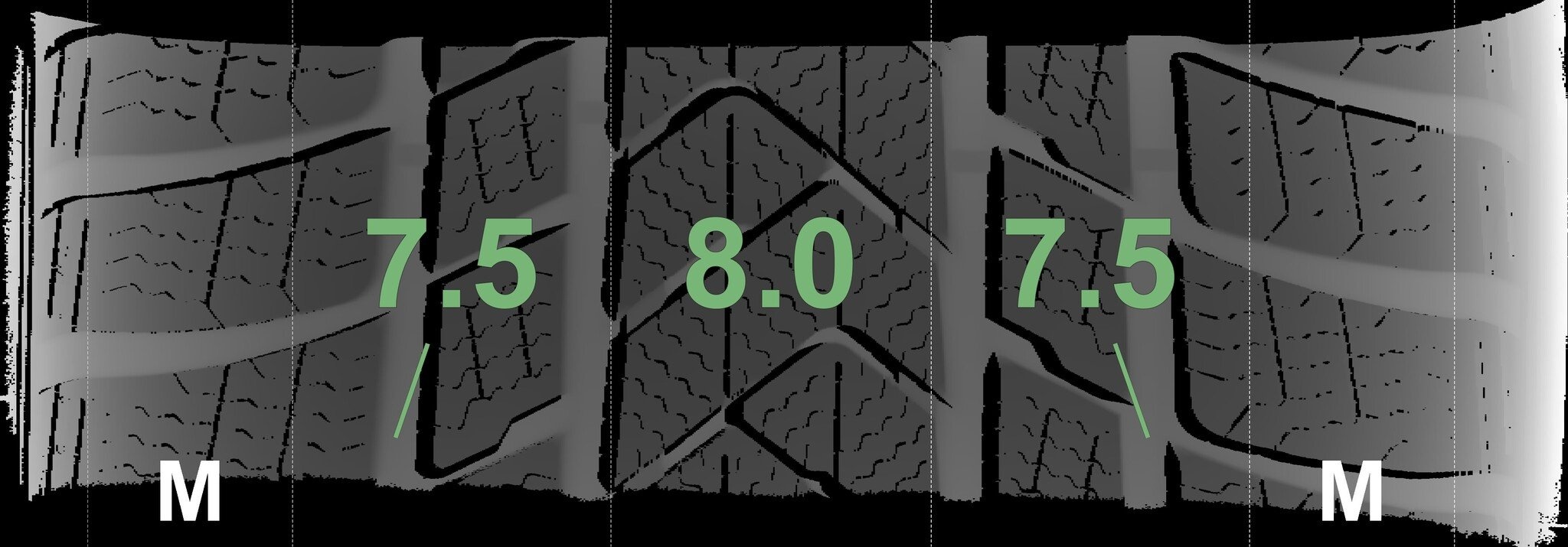 | Zustand | Profiltiefe | DOT | Vorderachse Rechts | Neu | 7.5 mm | 3425 |