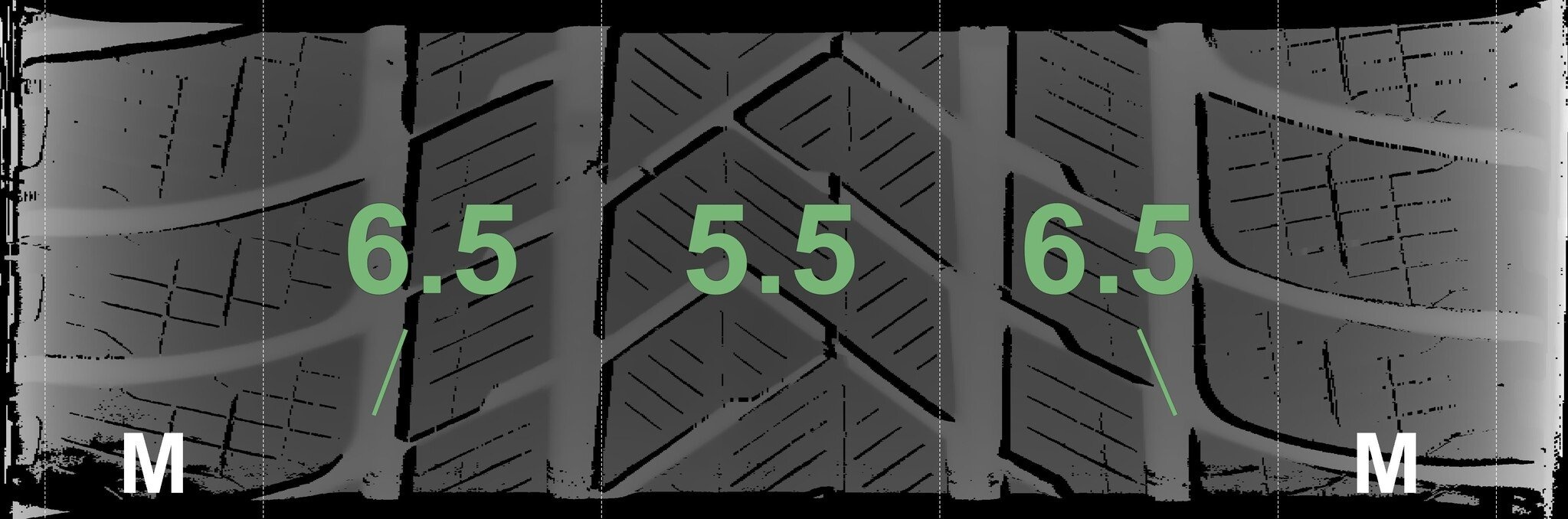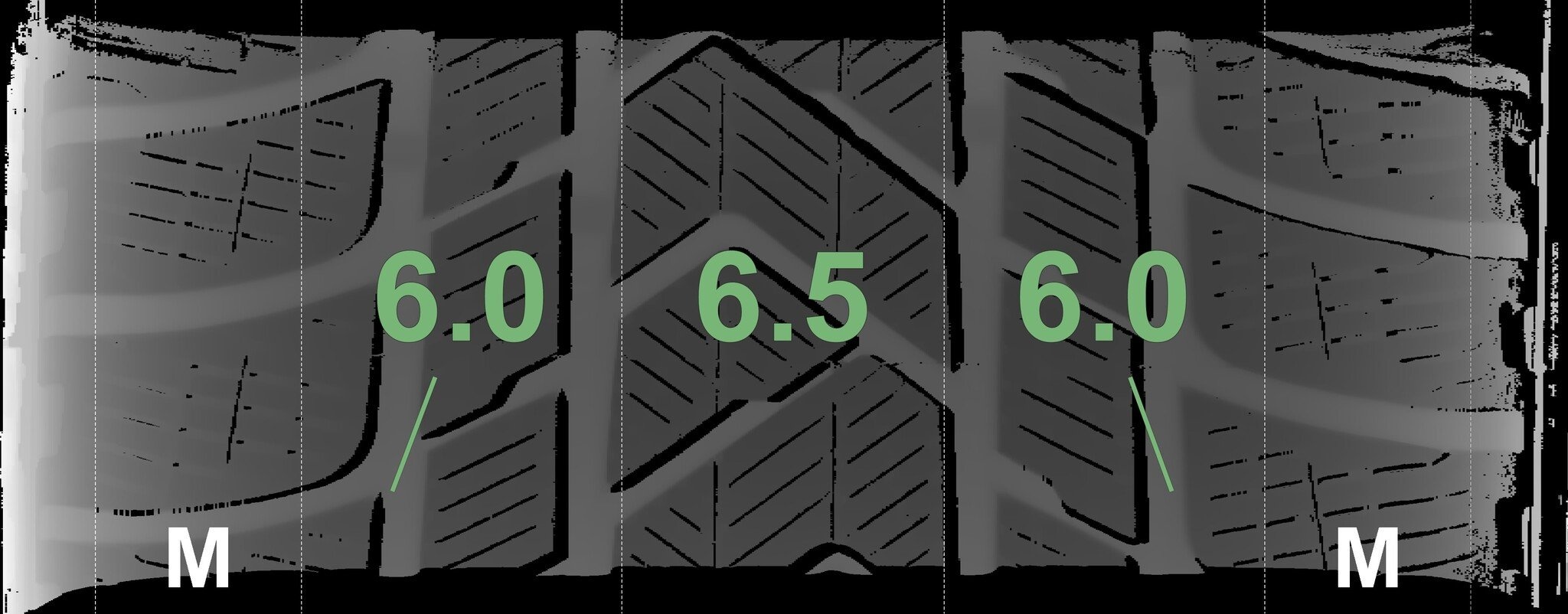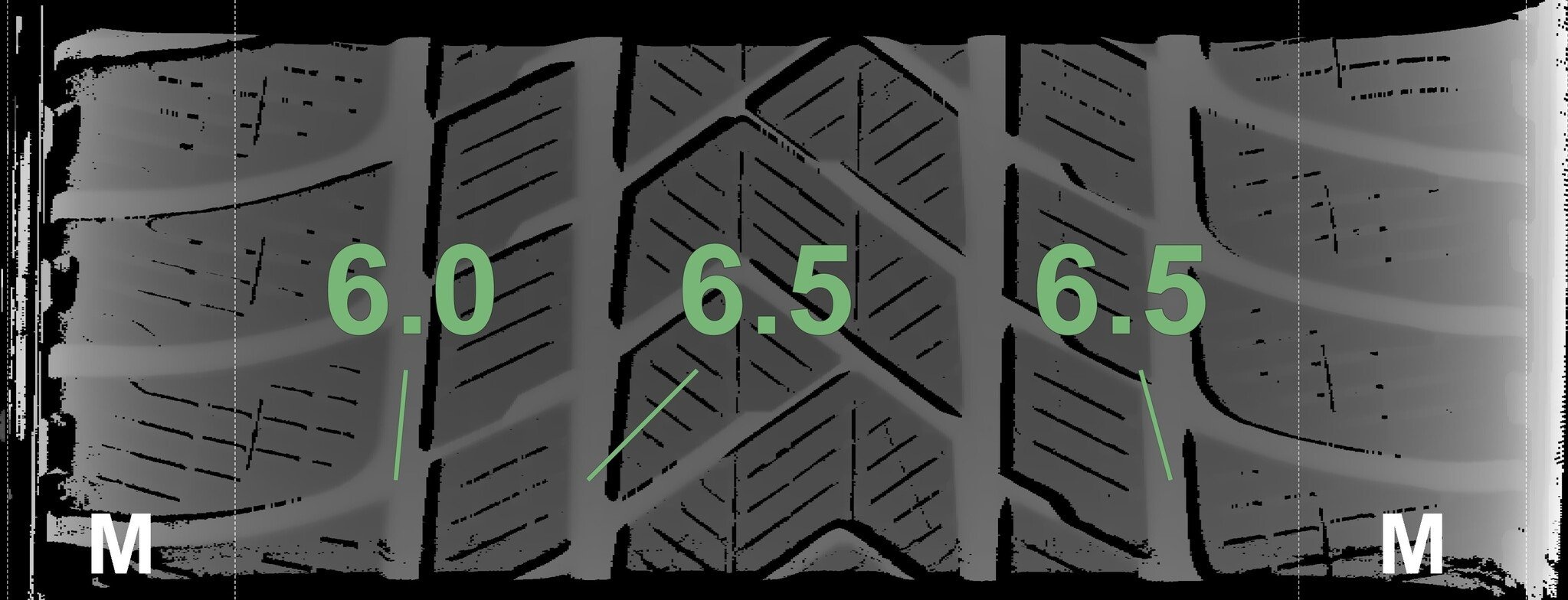 Die gemessenen Profiltiefen und die Details der Felgen sind oben dargestellt.