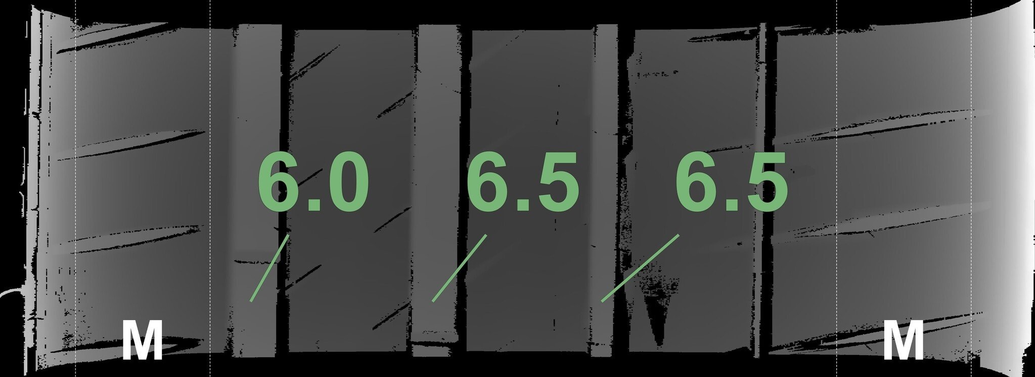 | Zustand | Profiltiefe | DOT | Vorderachse Rechts | Neu | 6.3 mm | 4625 |