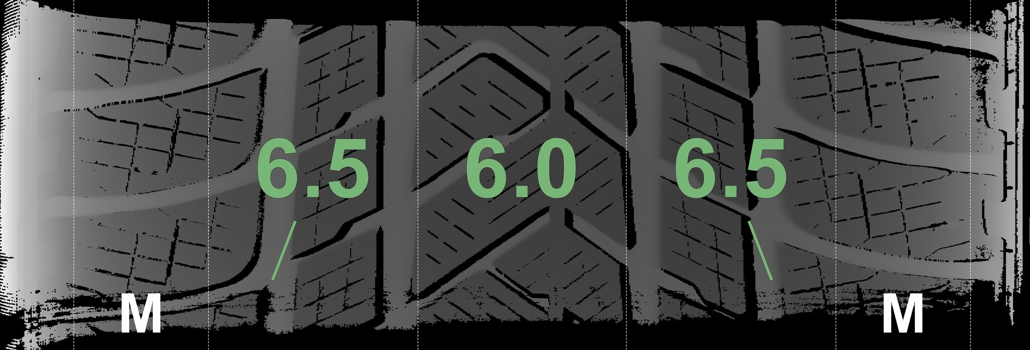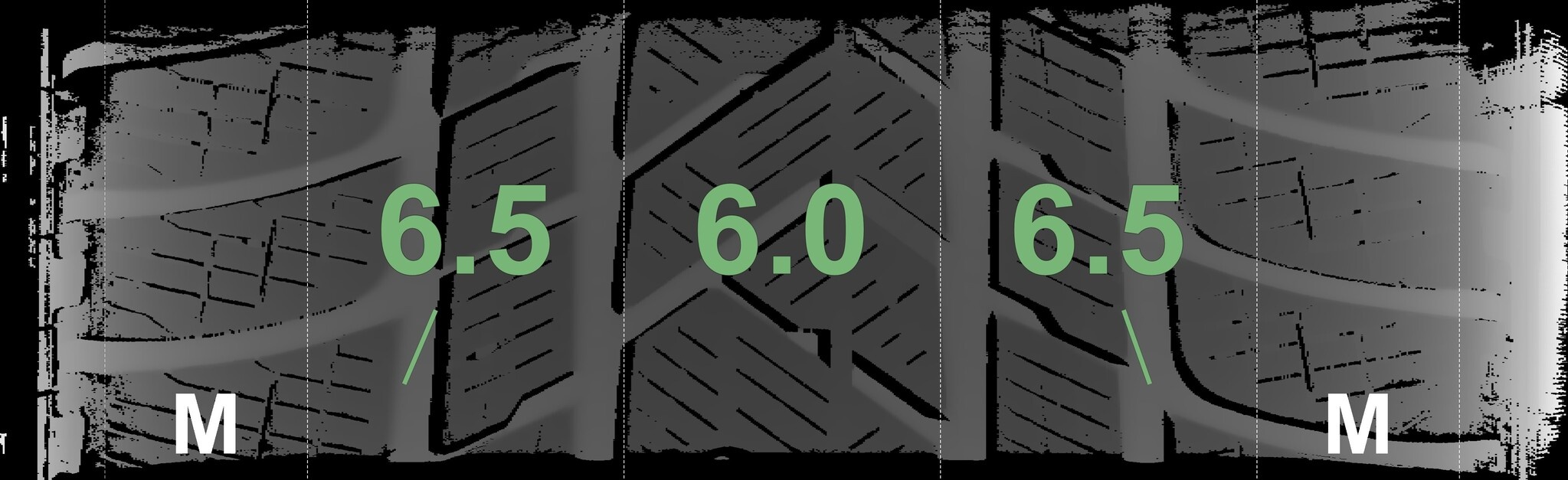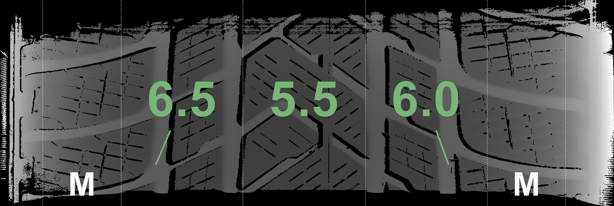 Die gemessenen Profiltiefen und Details der Felgen sind oben abgebildet.