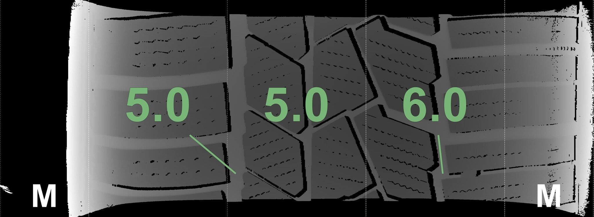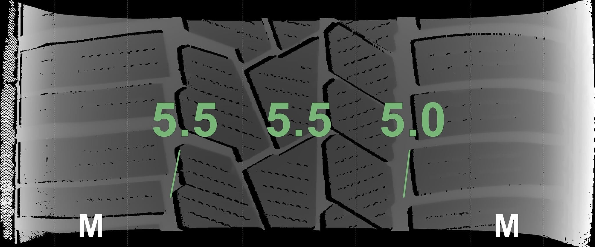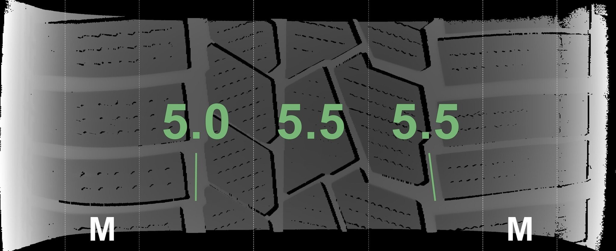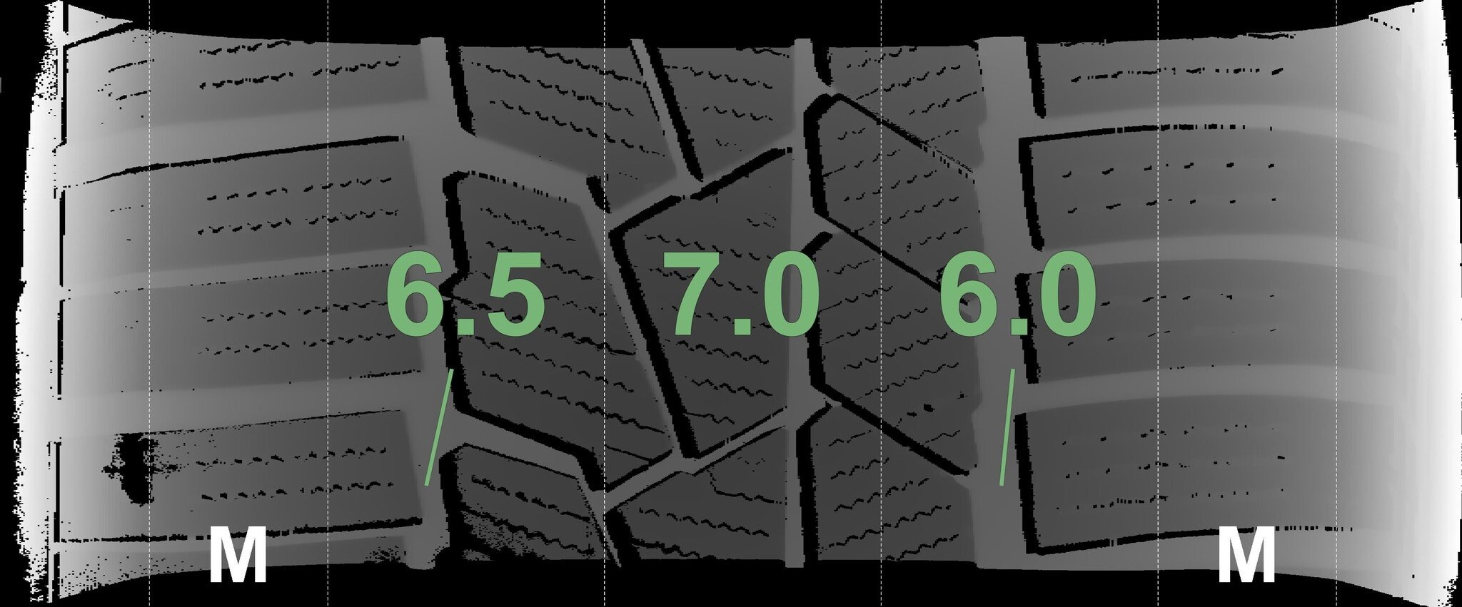 Die gemessenen Profiltiefen und die Details der Felgen sind oben angezeigt.