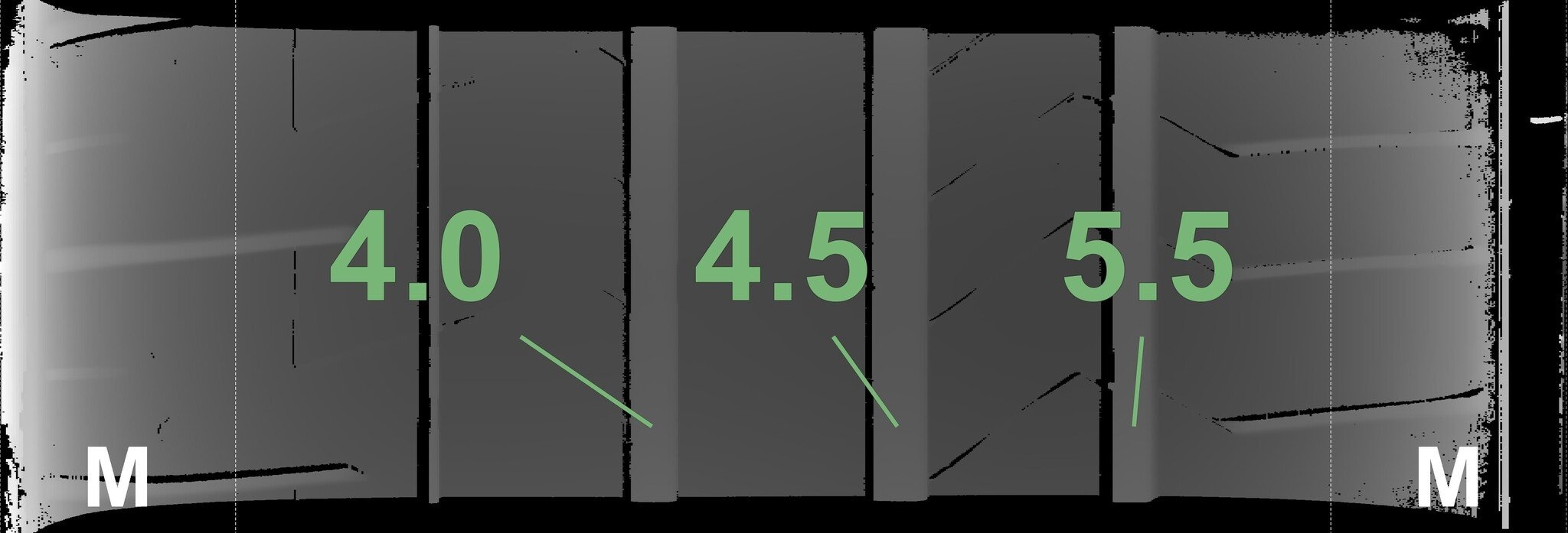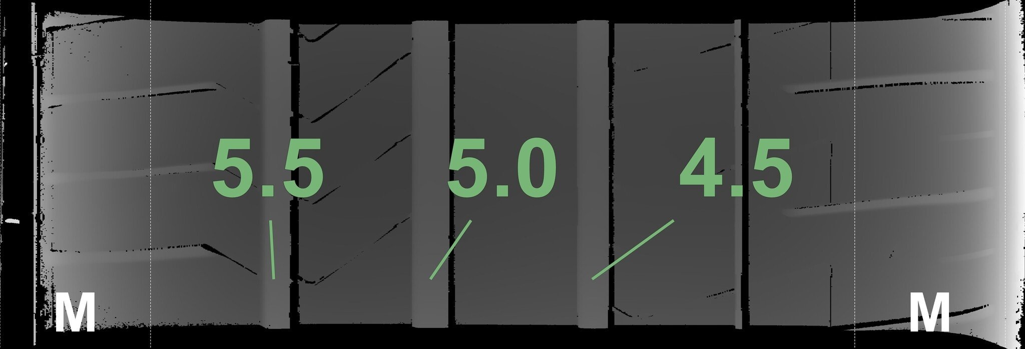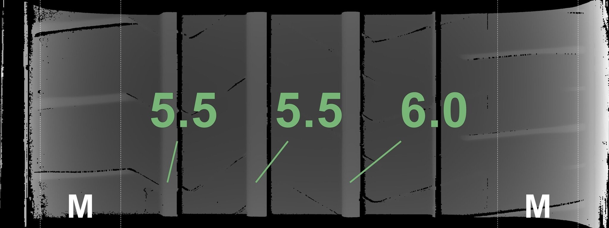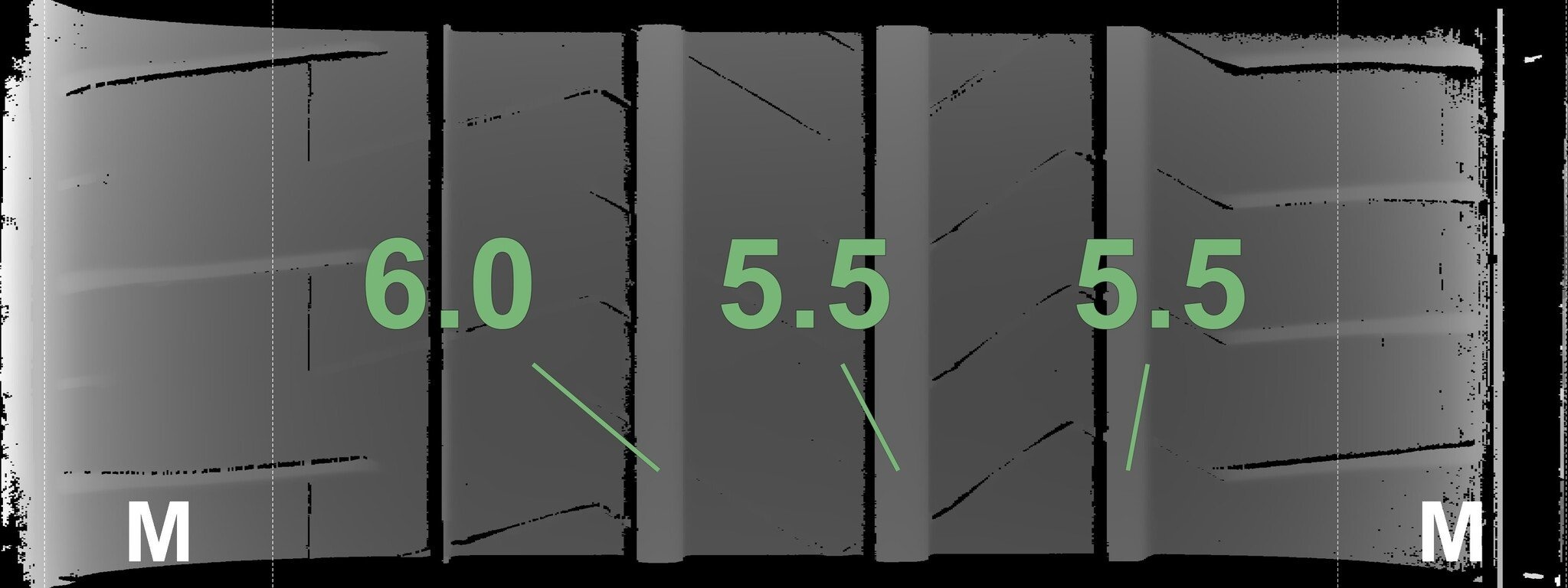 Die gemessenen Profiltiefen und Details zu den Felgen sind oben abgebildet.