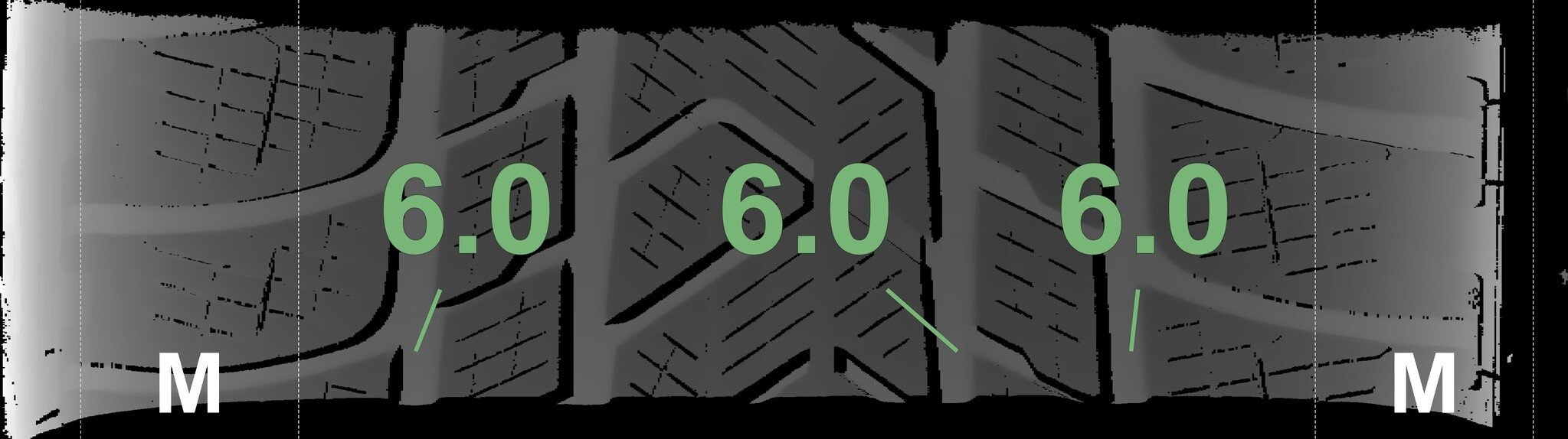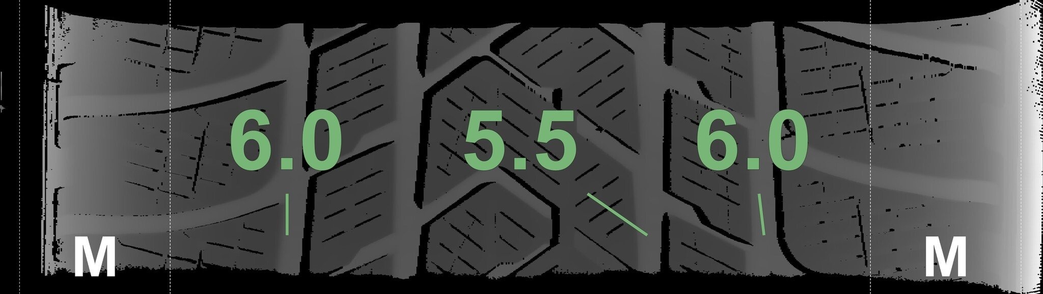 Die gemessenen Profiltiefen und die Details der Felgen sind oben dargestellt.