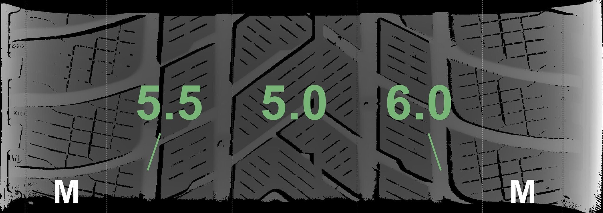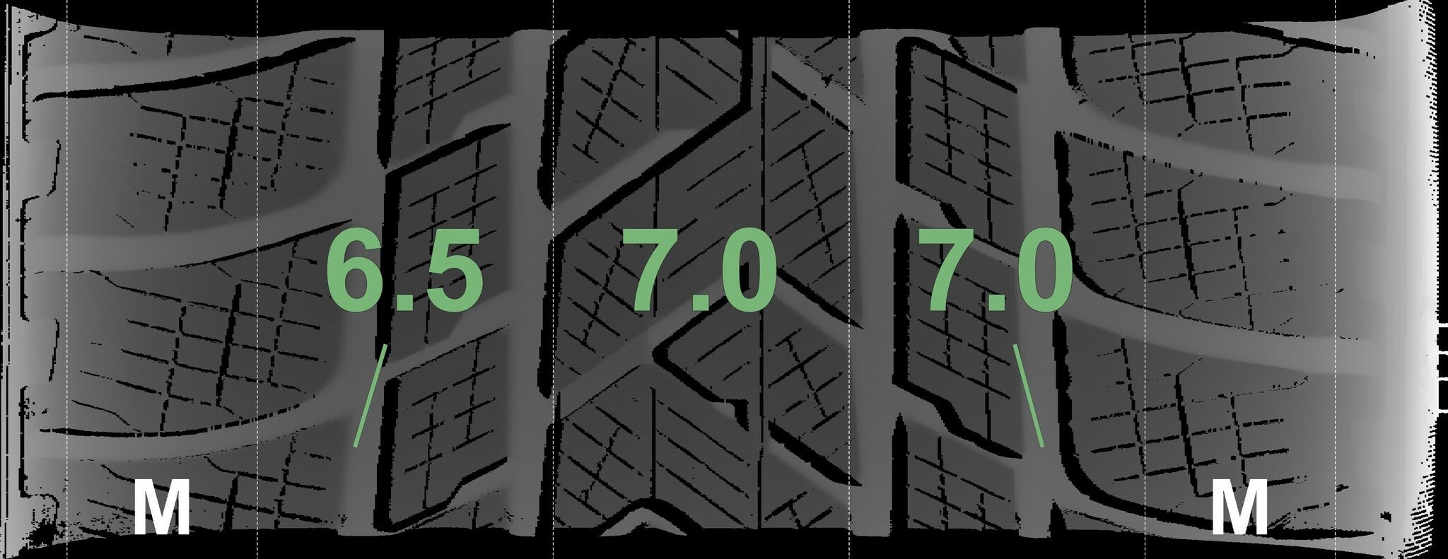 Die gemessenen Profiltiefen und die Details der Felgen sind oben aufgeführt.