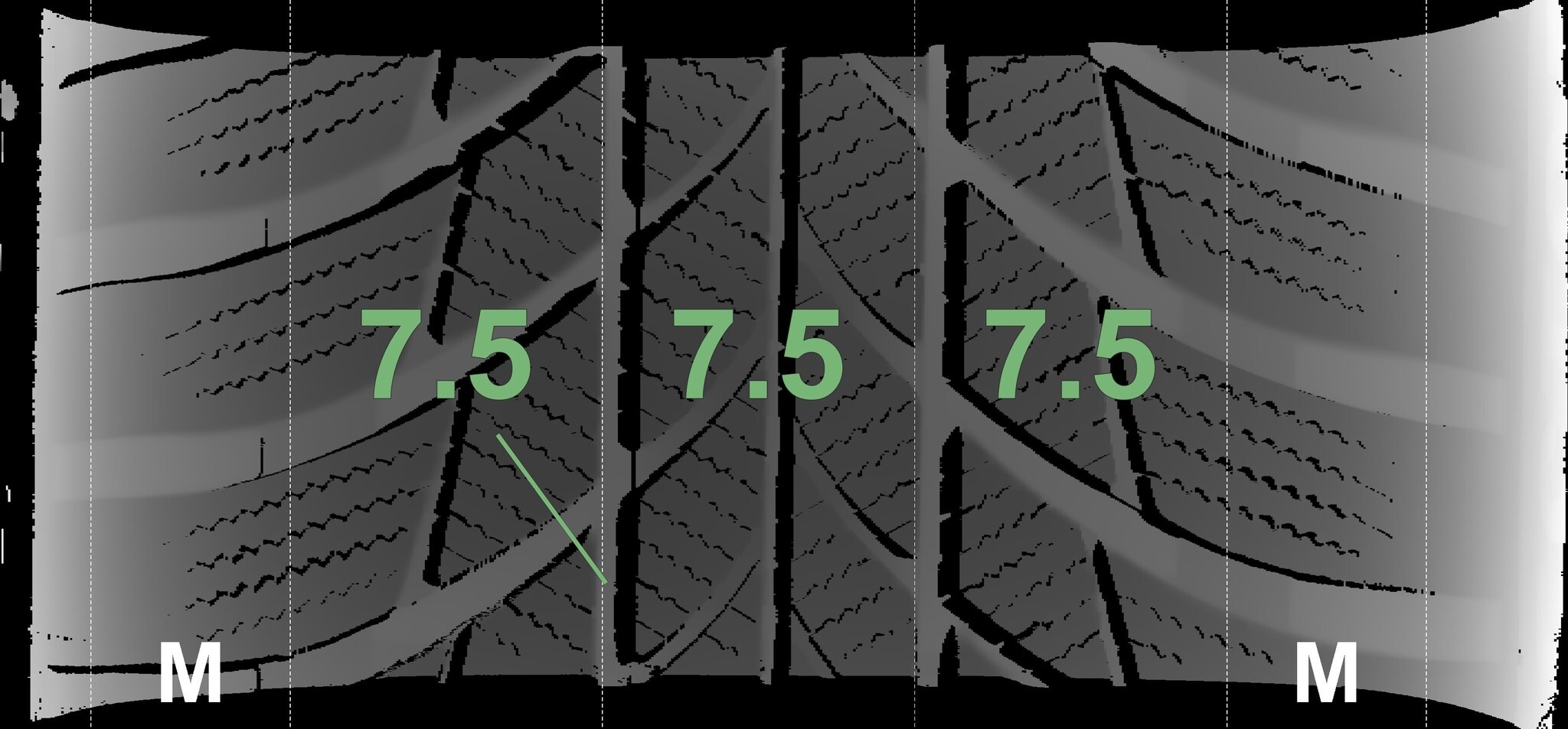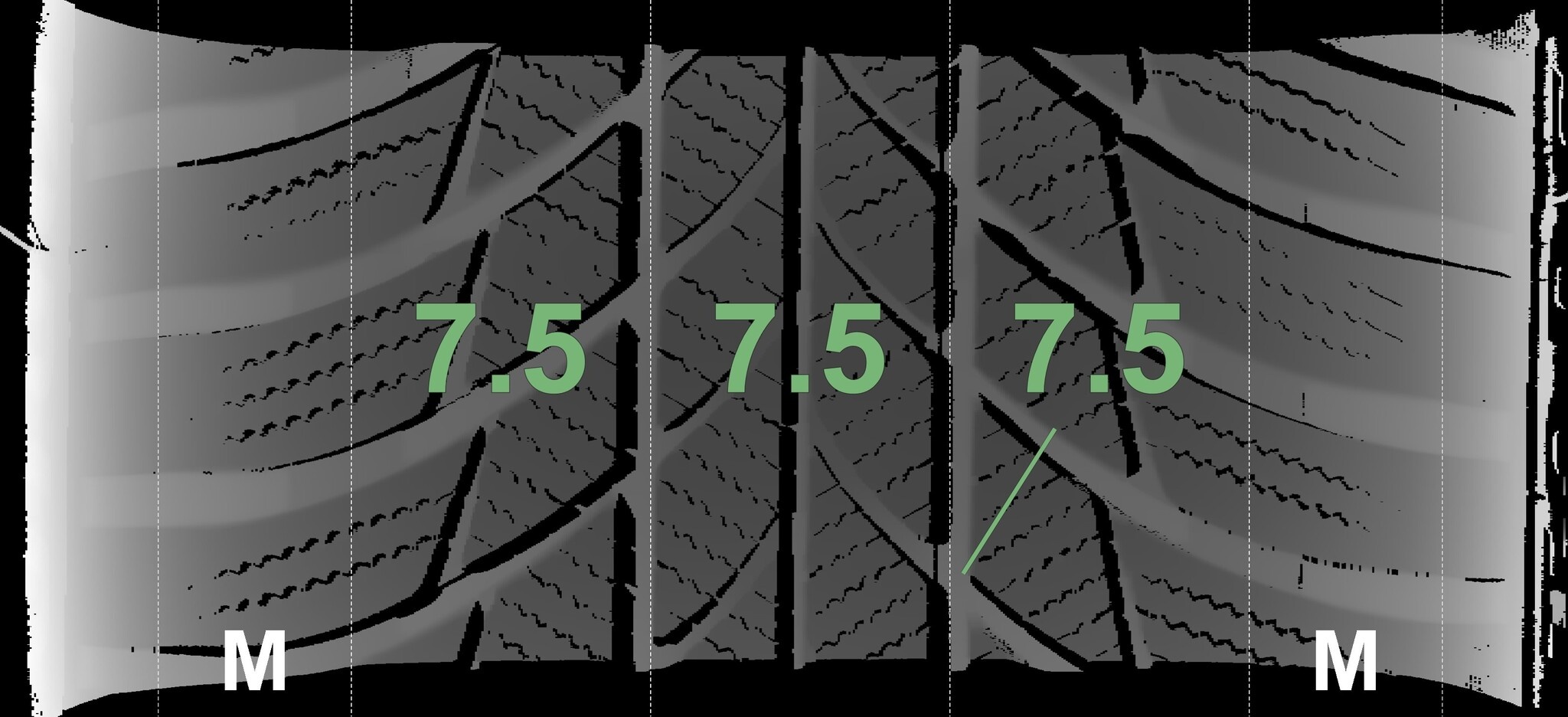 | Zustand | Profiltiefe | DOT | Hinterachse Links | Gebraucht | 7.5 mm | 3021 |