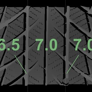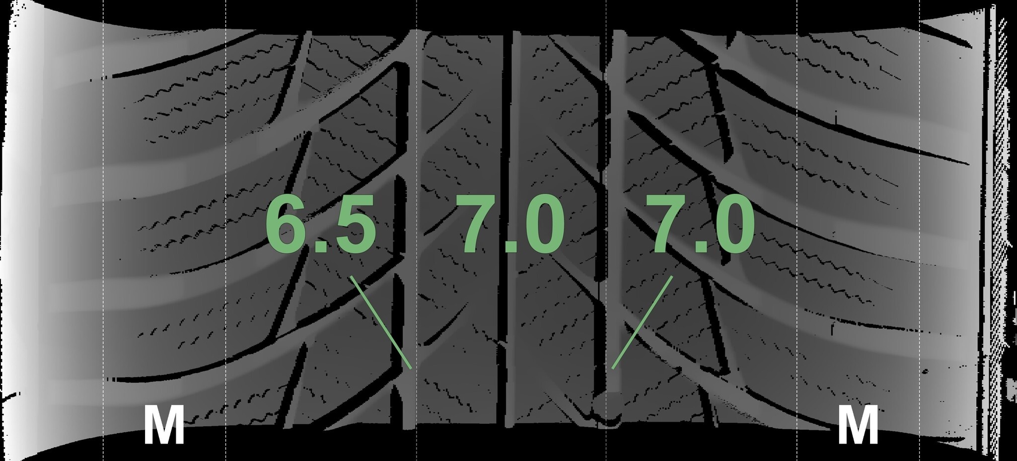 Die gemessenen Profiltiefen und die Details der Felgen sind oben dargestellt.