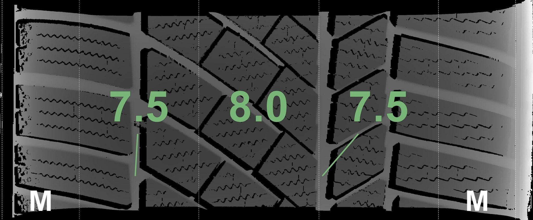 Die gemessenen Profiltiefen und Details zu den Felgen sind oben abgebildet.