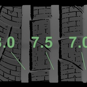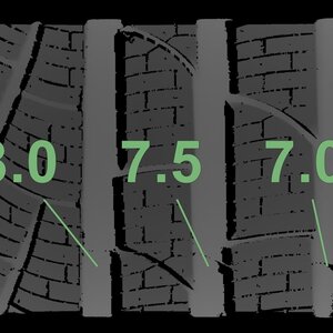Die gemessenen Profiltiefen und Details zu den Felgen sind oben abgebildet.