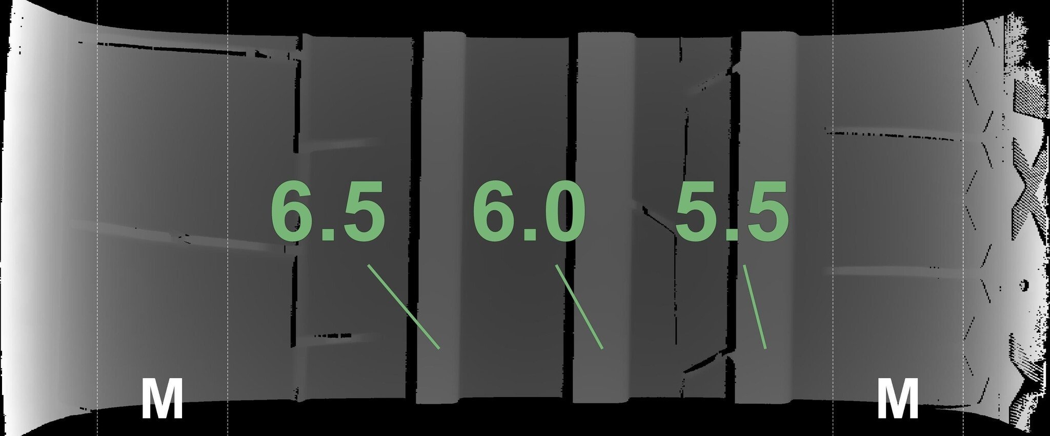 Die gemessenen Profiltiefen und Details zu den Felgen sind oben abgebildet.
