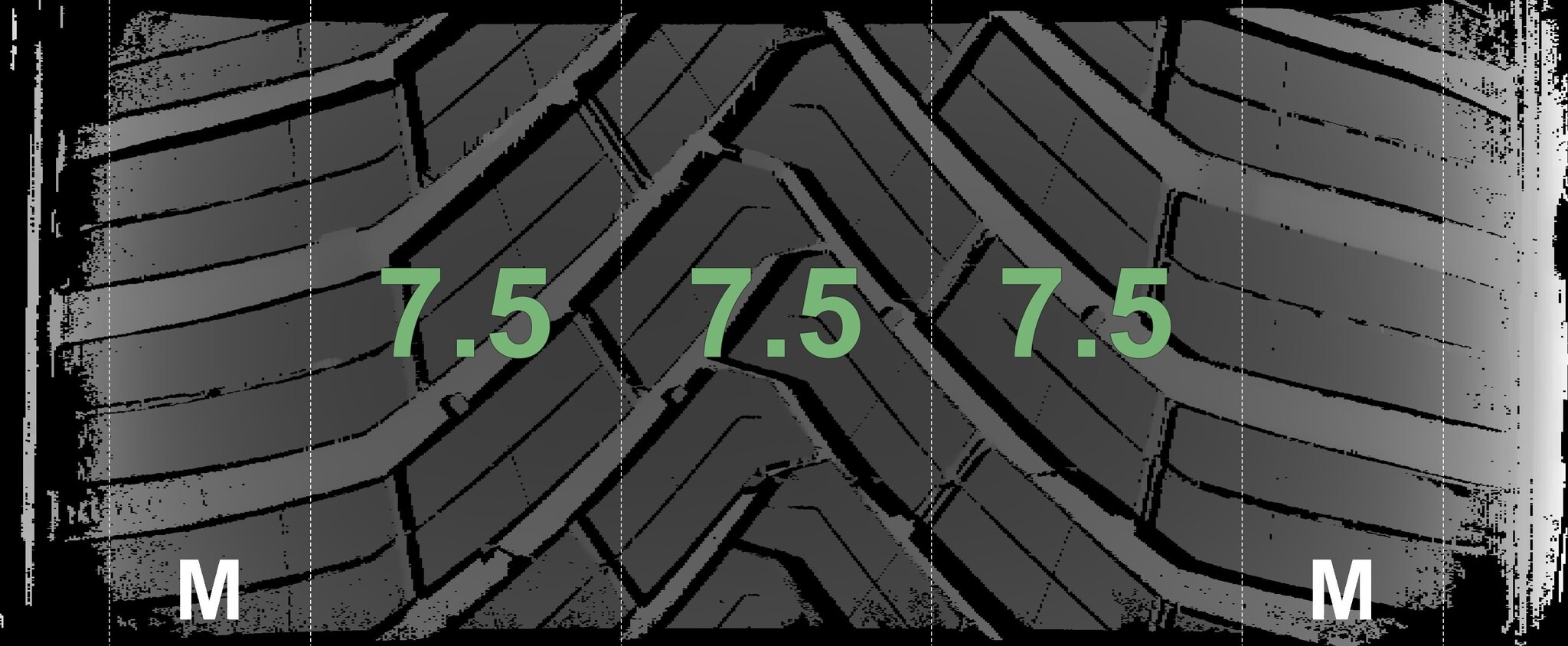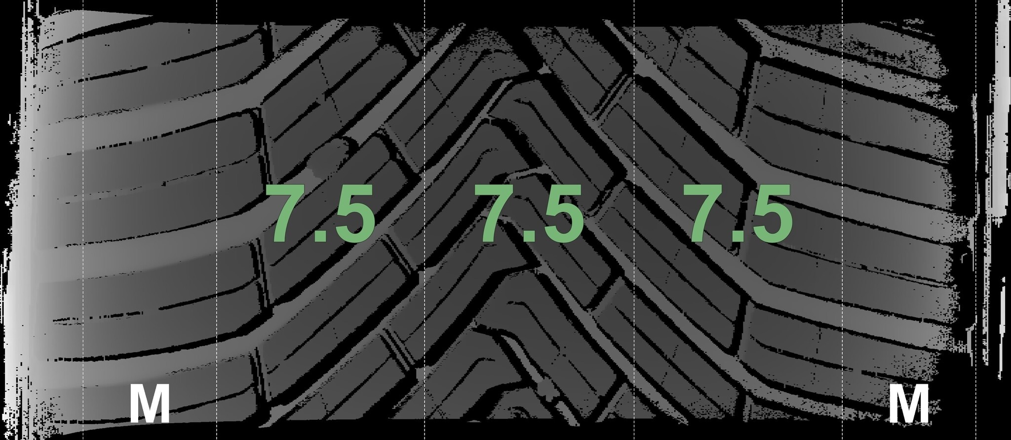 | Zustand | Profiltiefe | DOT | Vorderachse Links | Gebraucht | 7.5 mm | 3324 |
