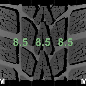 | Zustand | Profiltiefe | DOT | Vorderachse Links | Neu | 8,5 mm | 2118 |