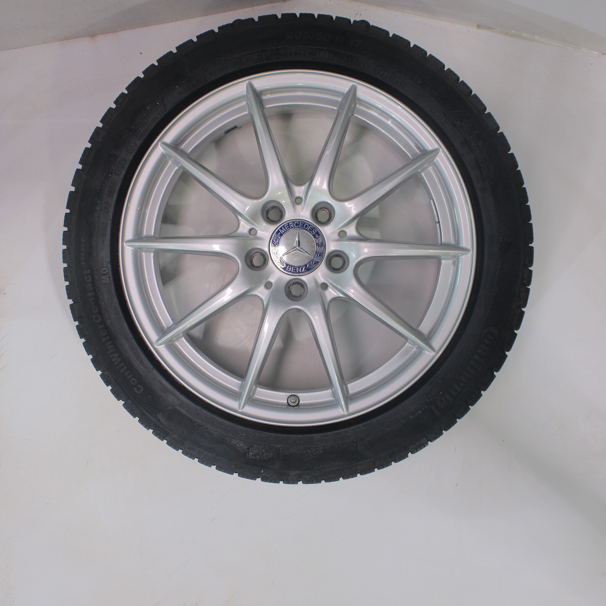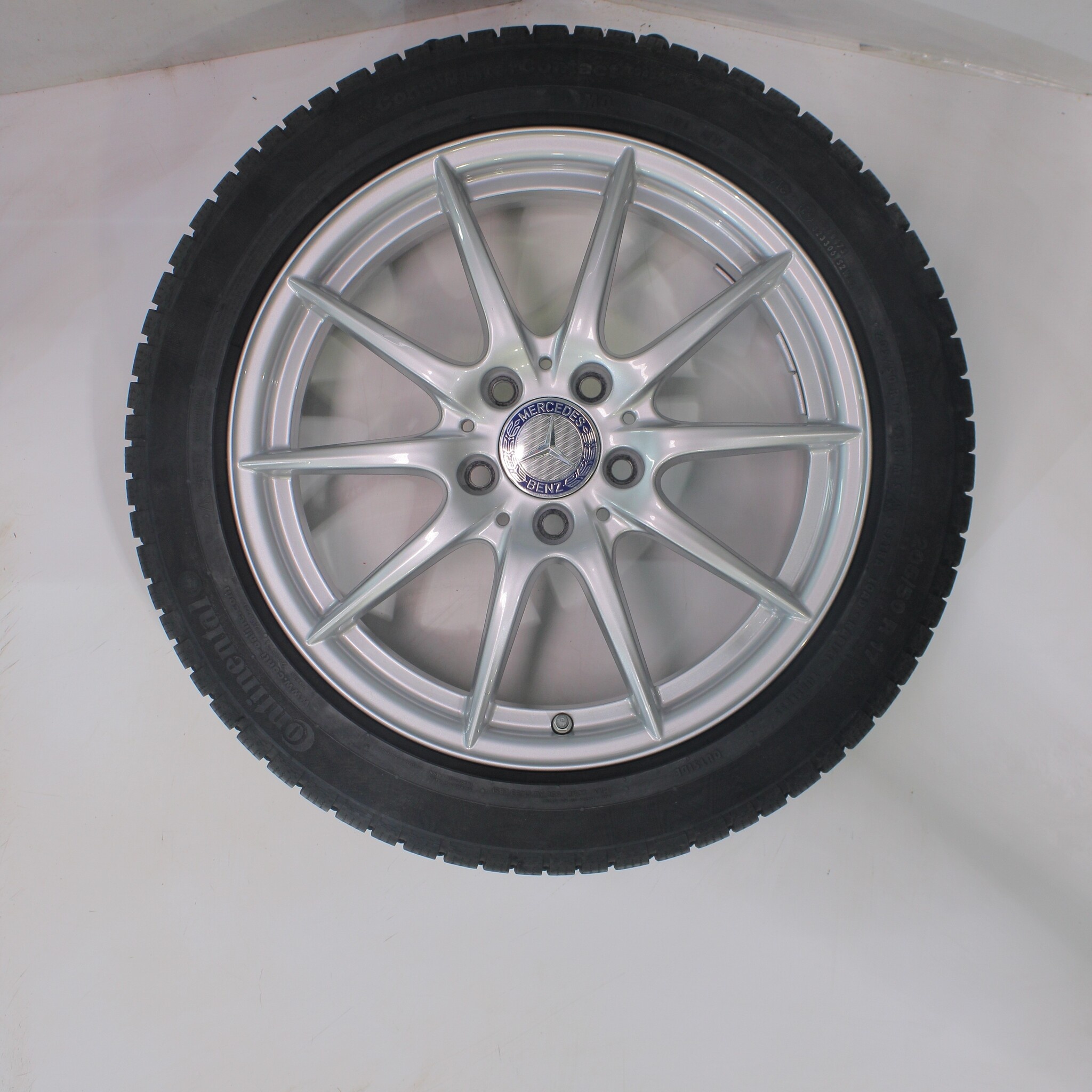 Original Radsatz von Mercedes, 17 Zoll Felgen mit Continental WinterContact TS 830 P Winterkompletträder. Diese Felgen sind Original Felgen der Marke Mercedes und geeignet für: Mercedes A B CLA Klasse W176 W117 W246.