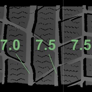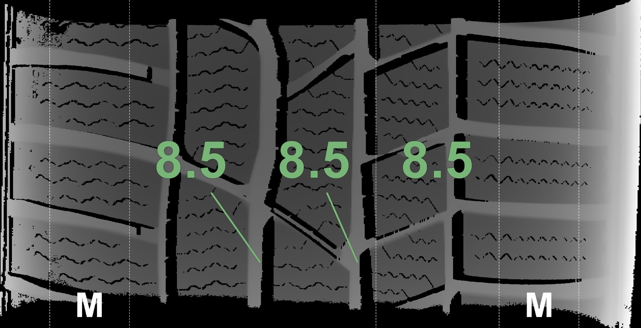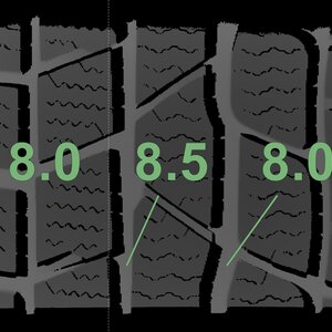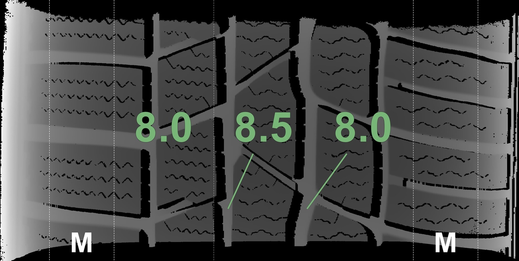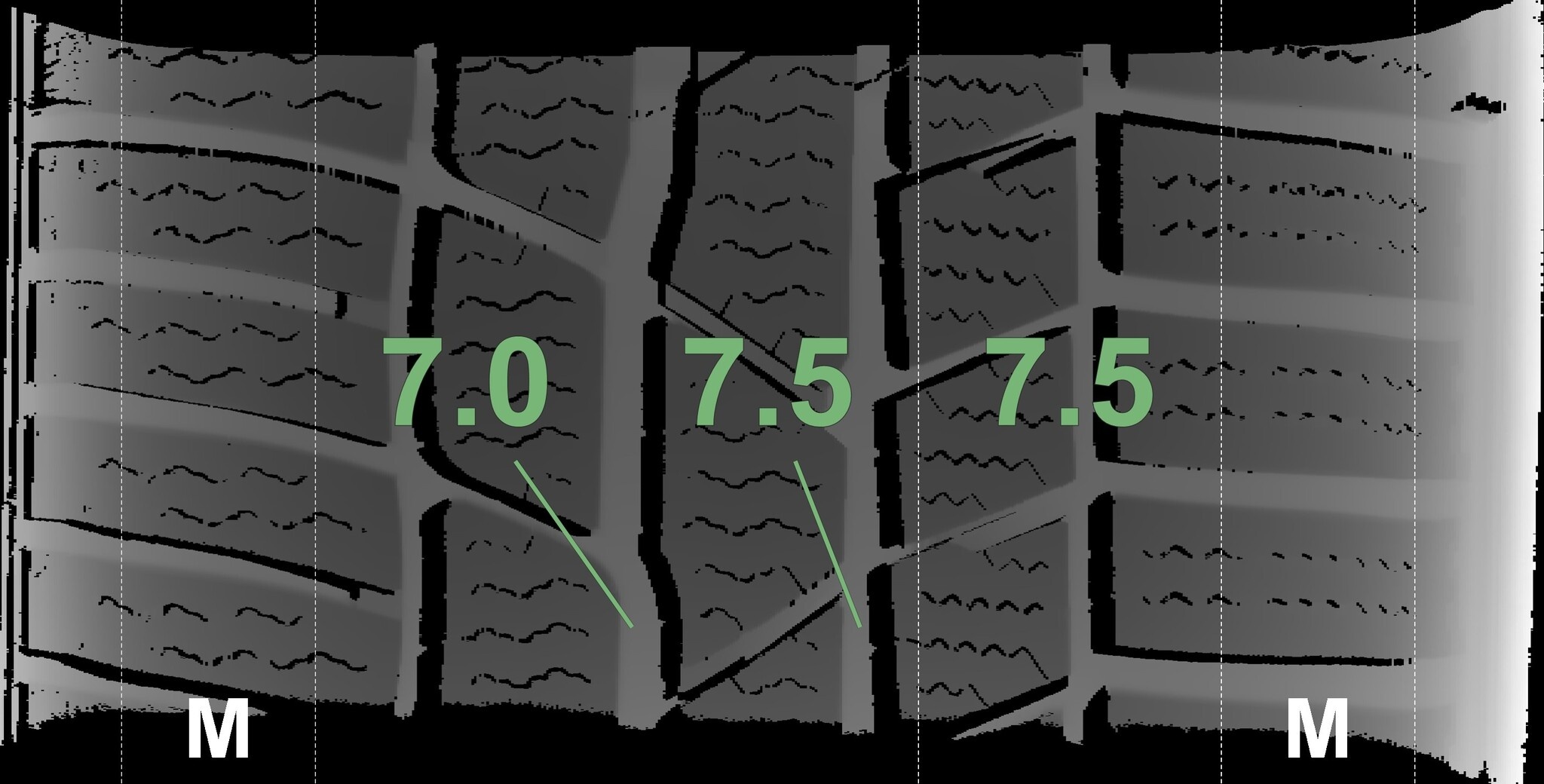 Die gemessenen Profiltiefen und die Details der Felgen sind oben dargestellt.