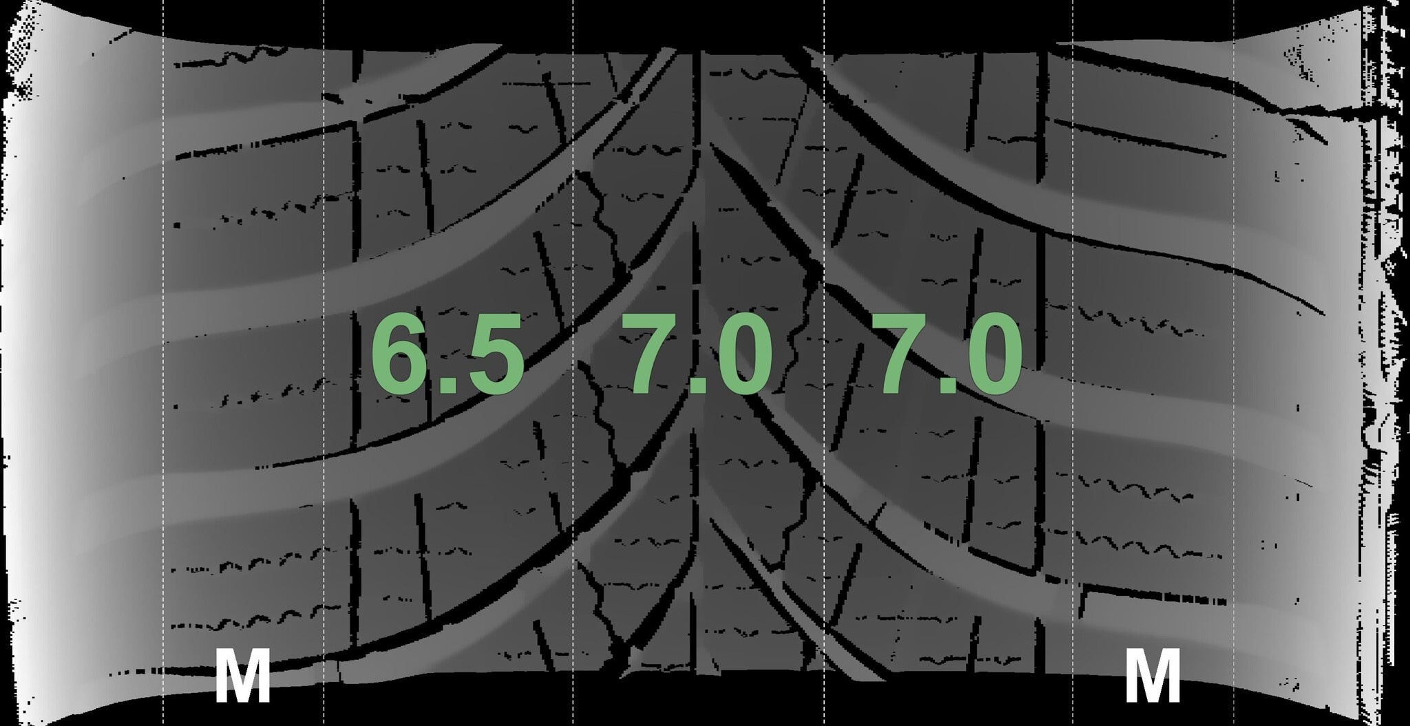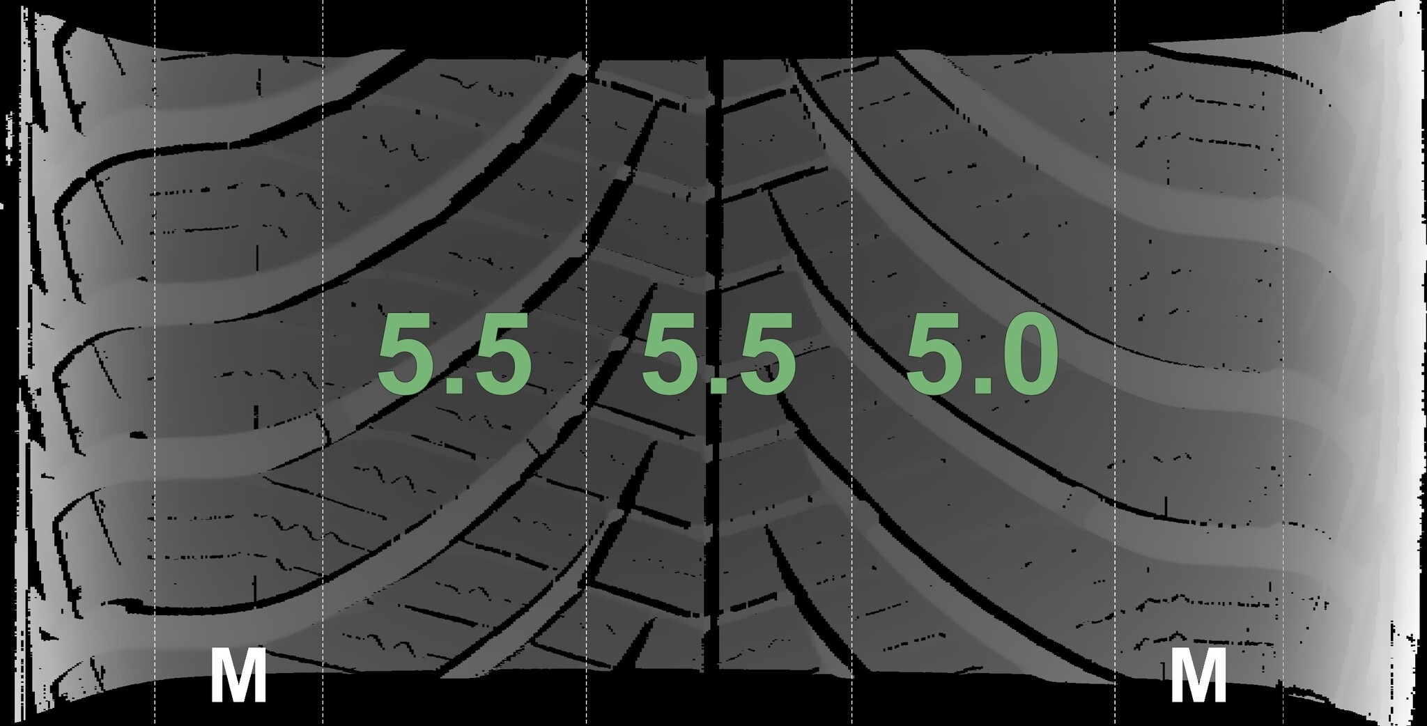 Die gemessenen Profiltiefen und Details zu den Felgen sind oben abgebildet.