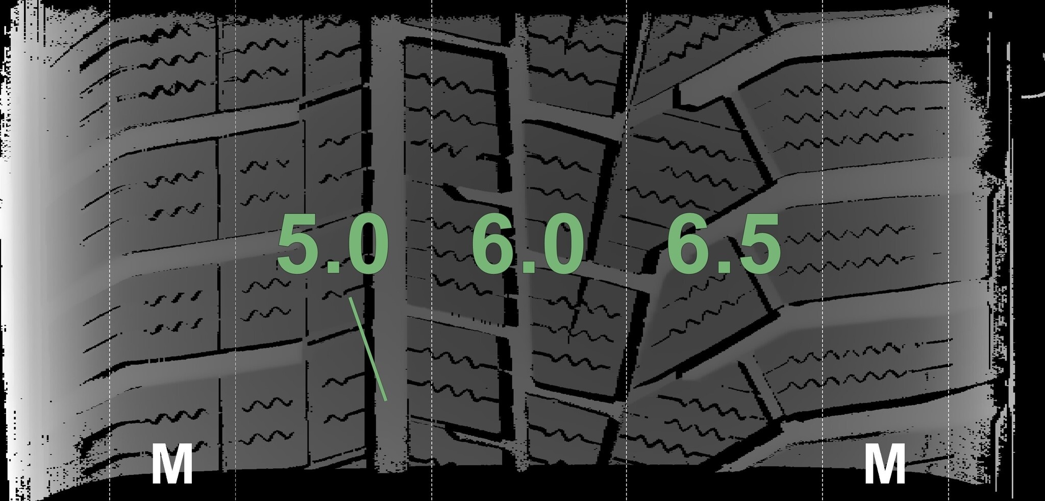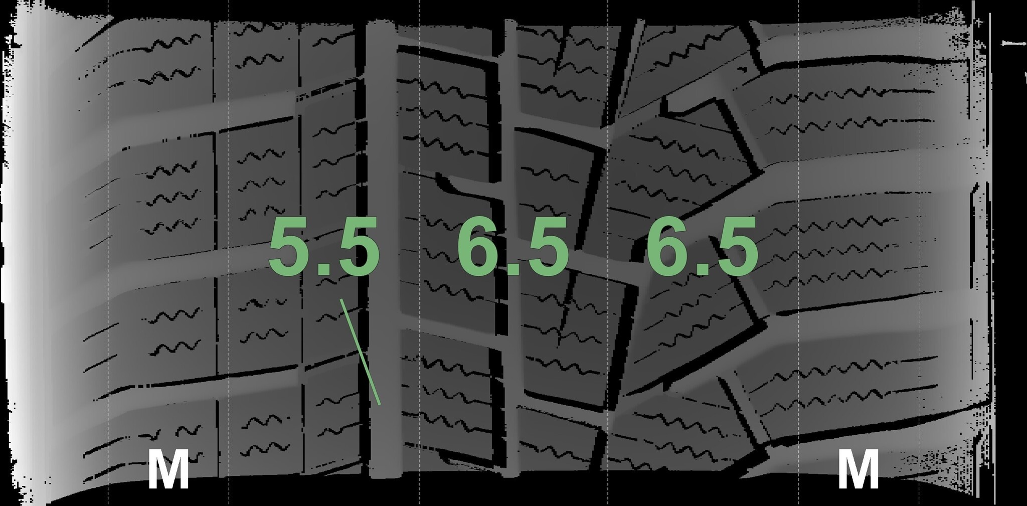 Die gemessenen Profiltiefen und Details zu den Felgen sind oben abgebildet.