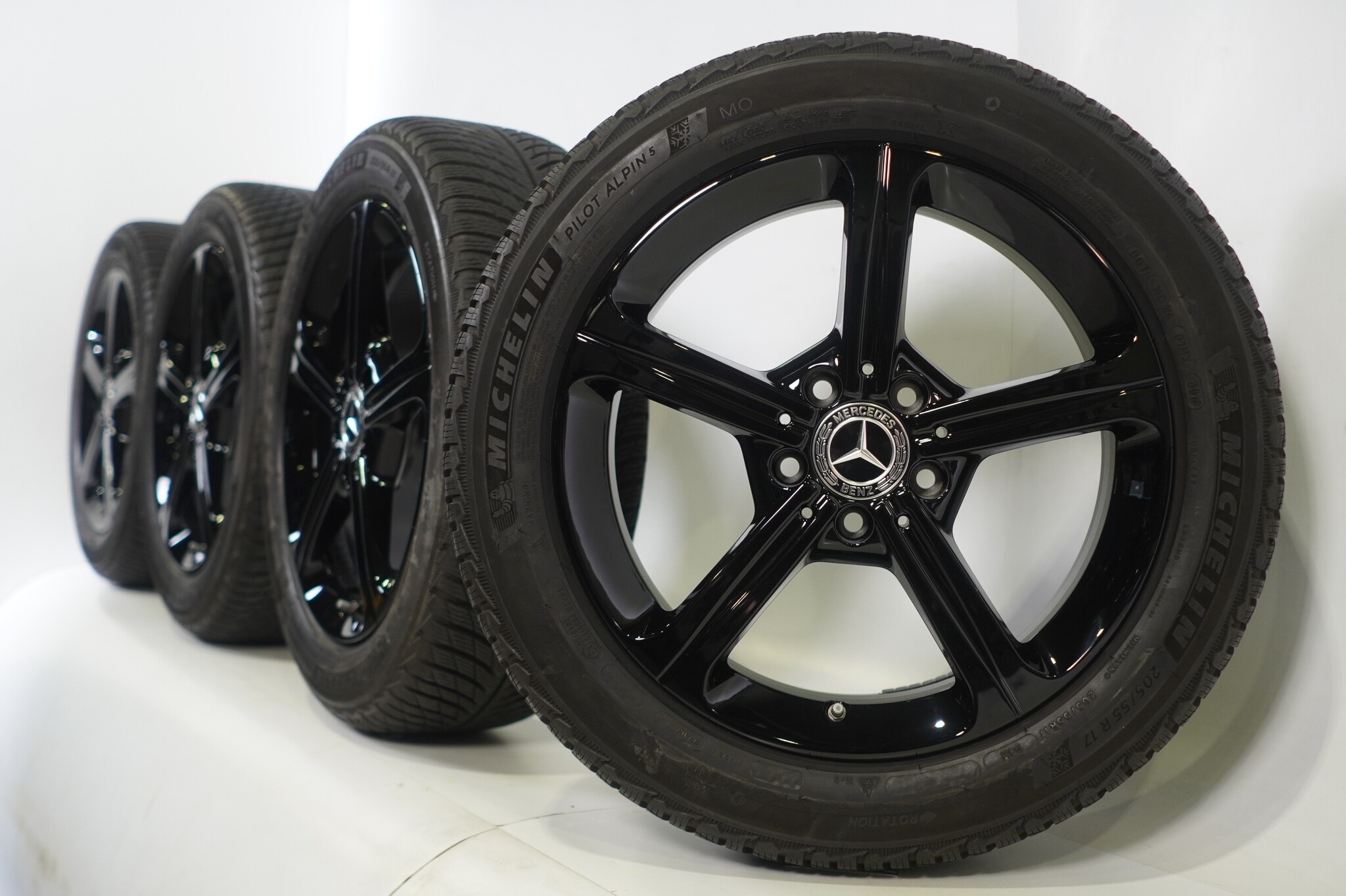 Original Mercedes Radsatz, stylische 17-Zoll Felgen mit Michelin Pilotalpin 5 Winterkompletträdern. Diese Felgen sind originale Mercedes Markenfelgen und geeignet für: Mercedes A B CLA Klasse W177 C118 W247.