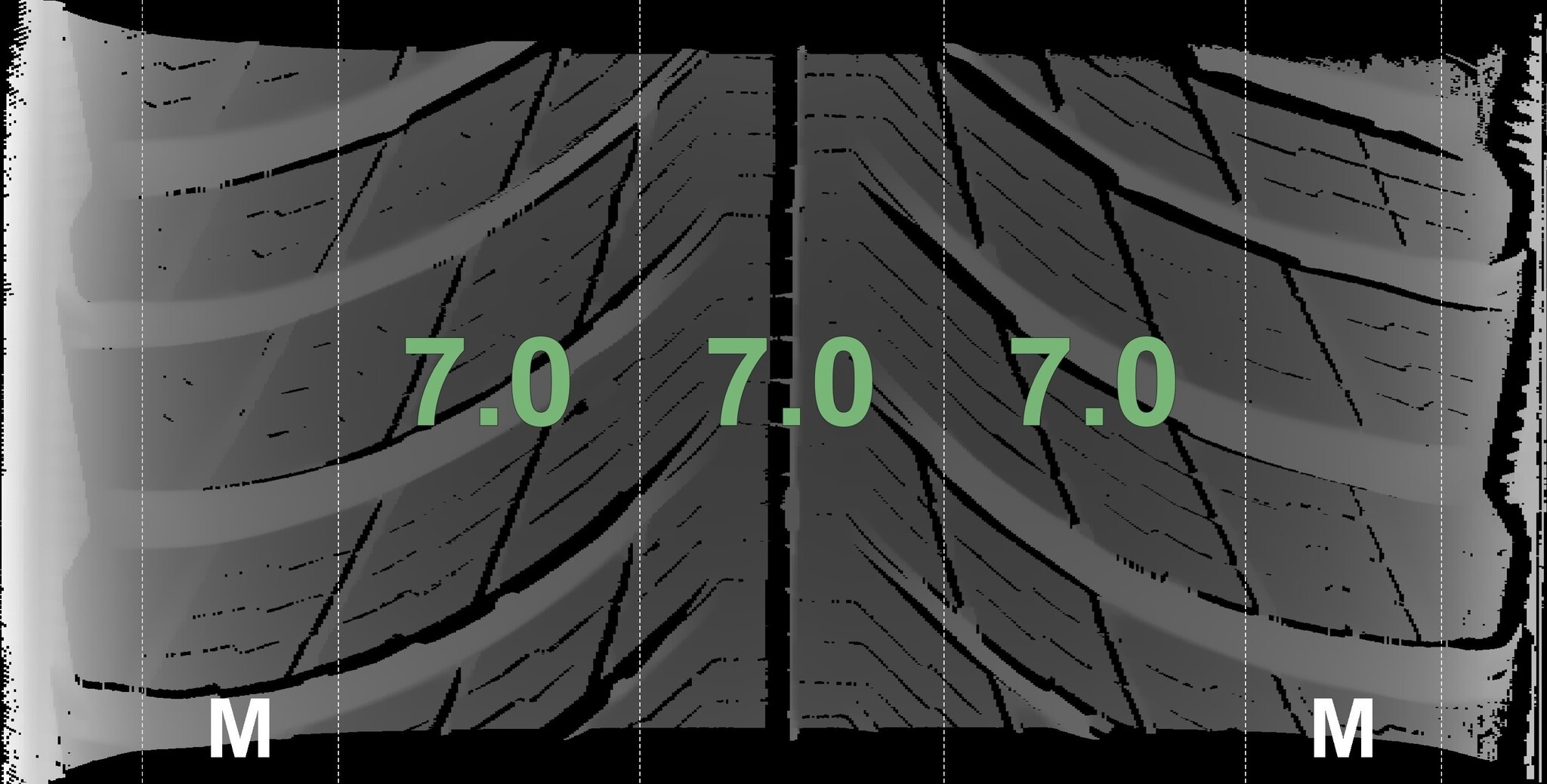 Zustand | Profiltiefe | DOT | Hinterachse Links | Demo-Noppen noch sichtbar | 7,0 mm | 3119 |