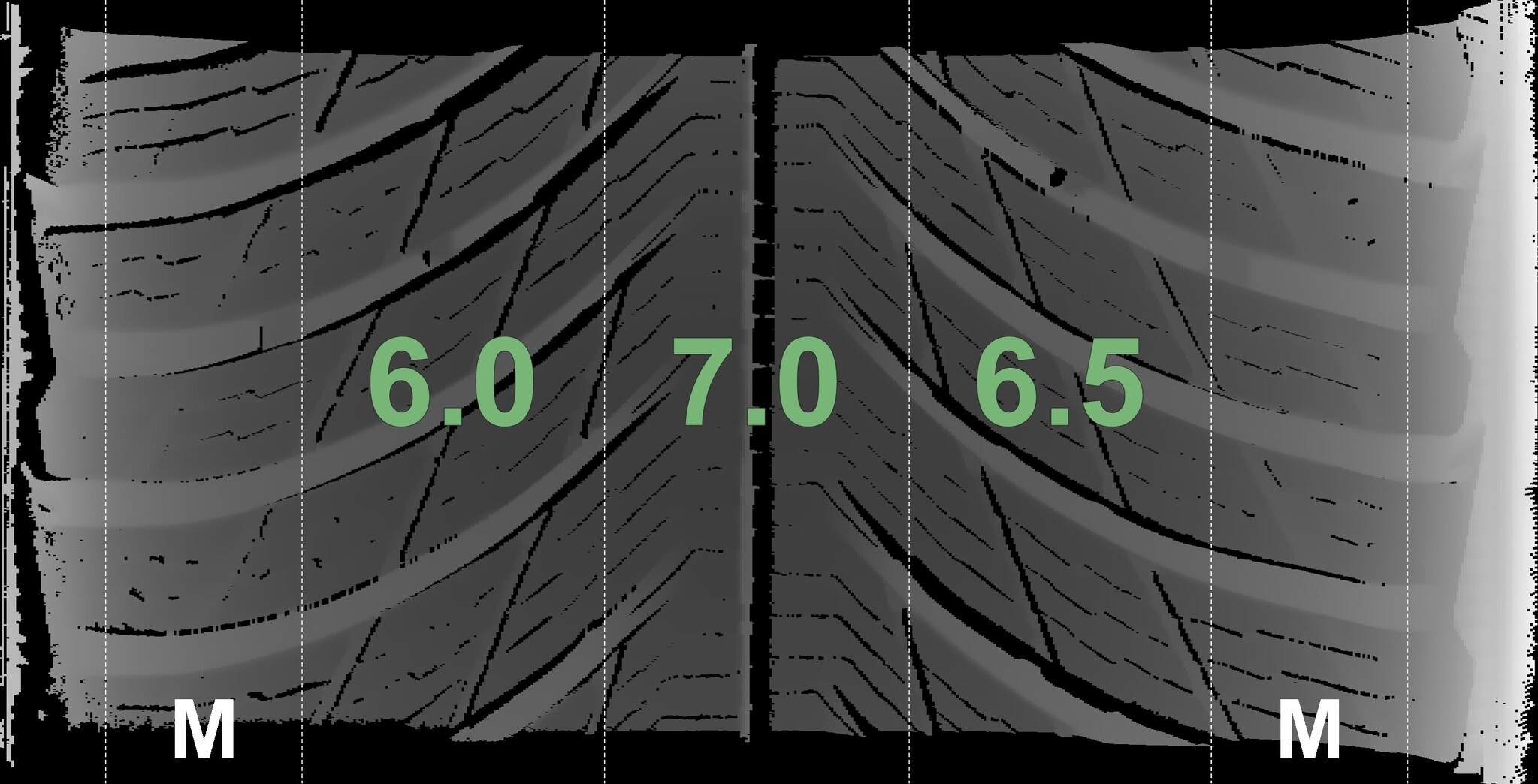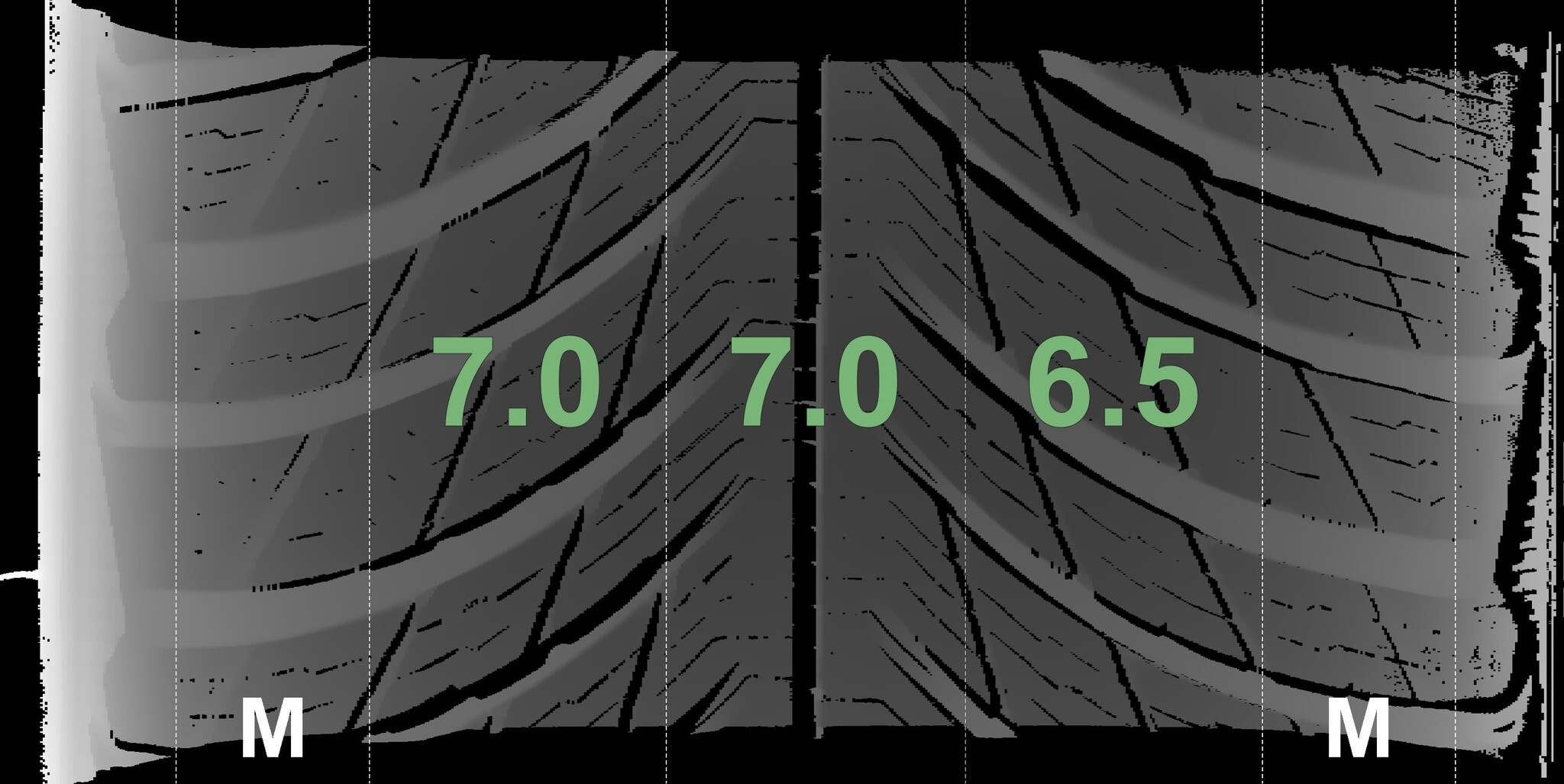 Die gemessenen Profiltiefen und Details zu den Felgen sind oben abgebildet.