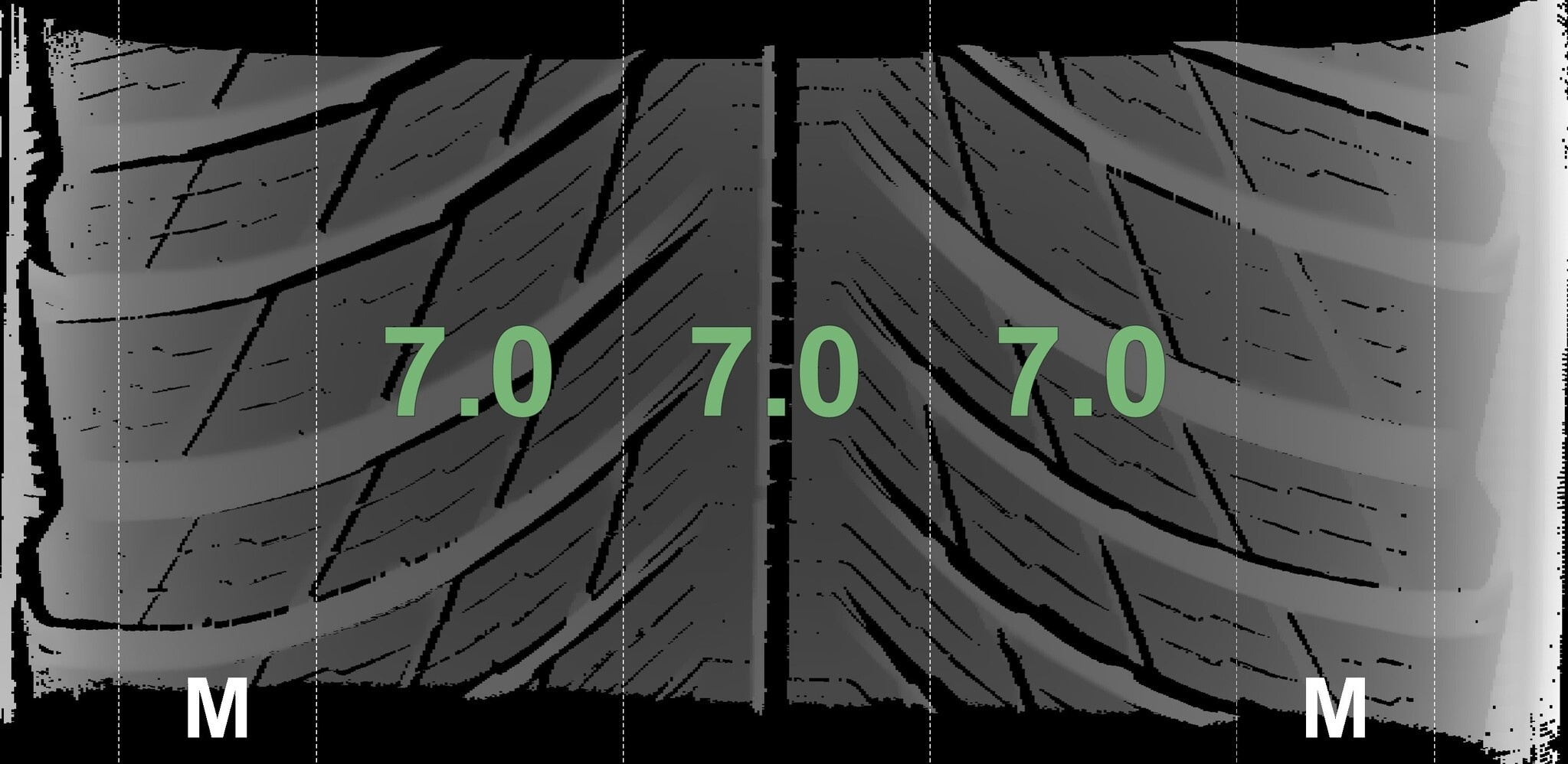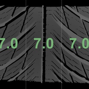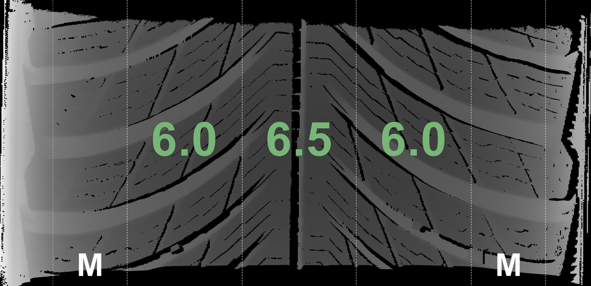Die gemessenen Profiltiefen und die Details der Felgen sind oben angezeigt.