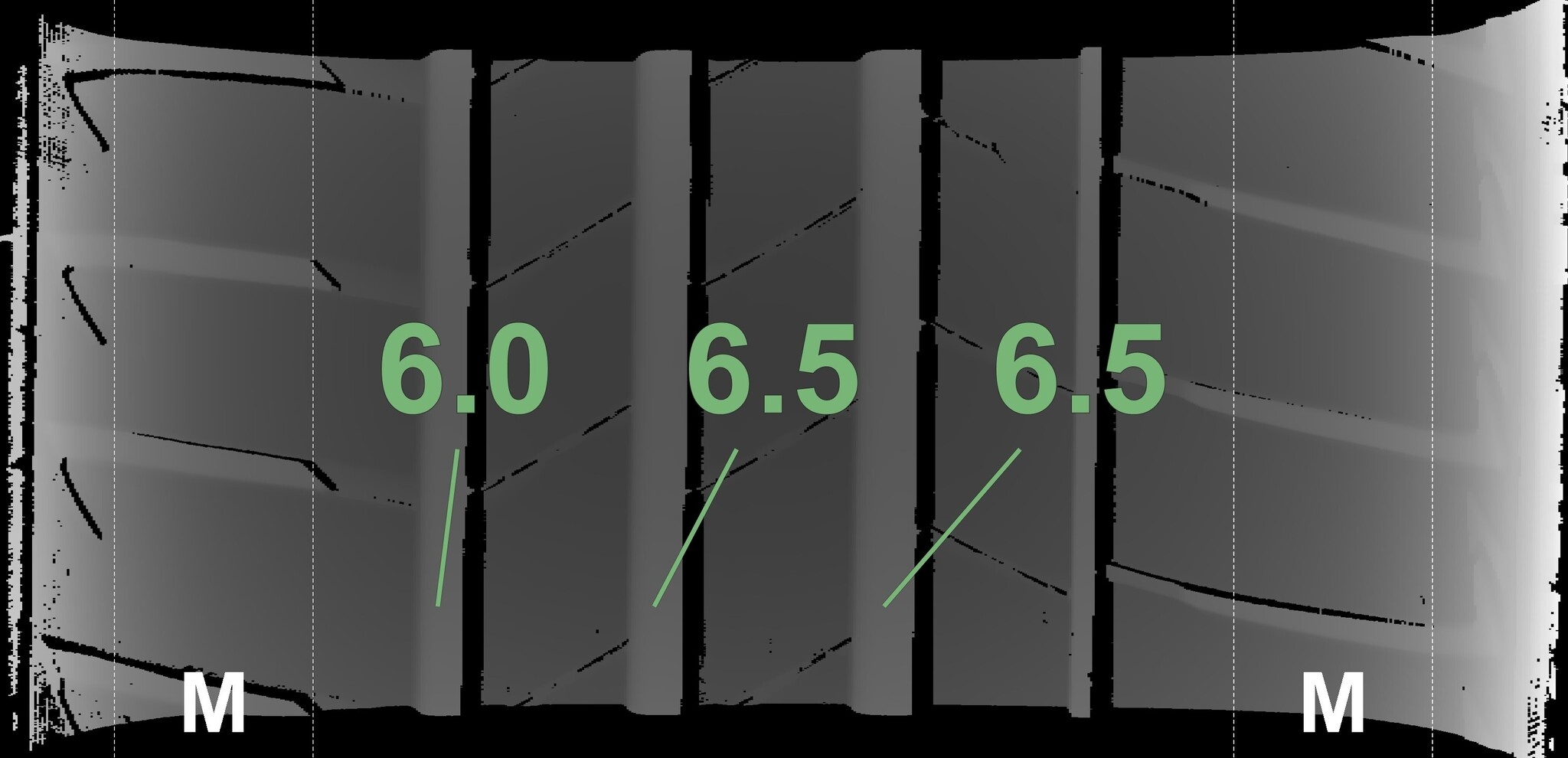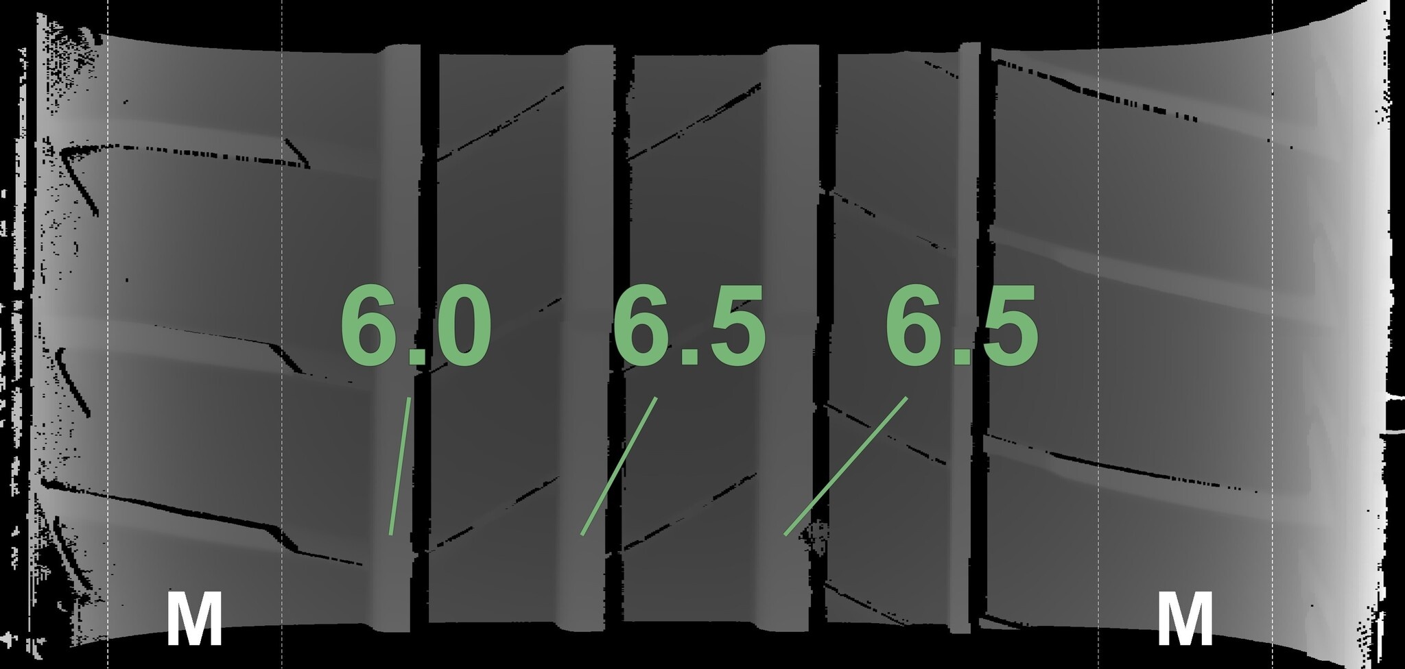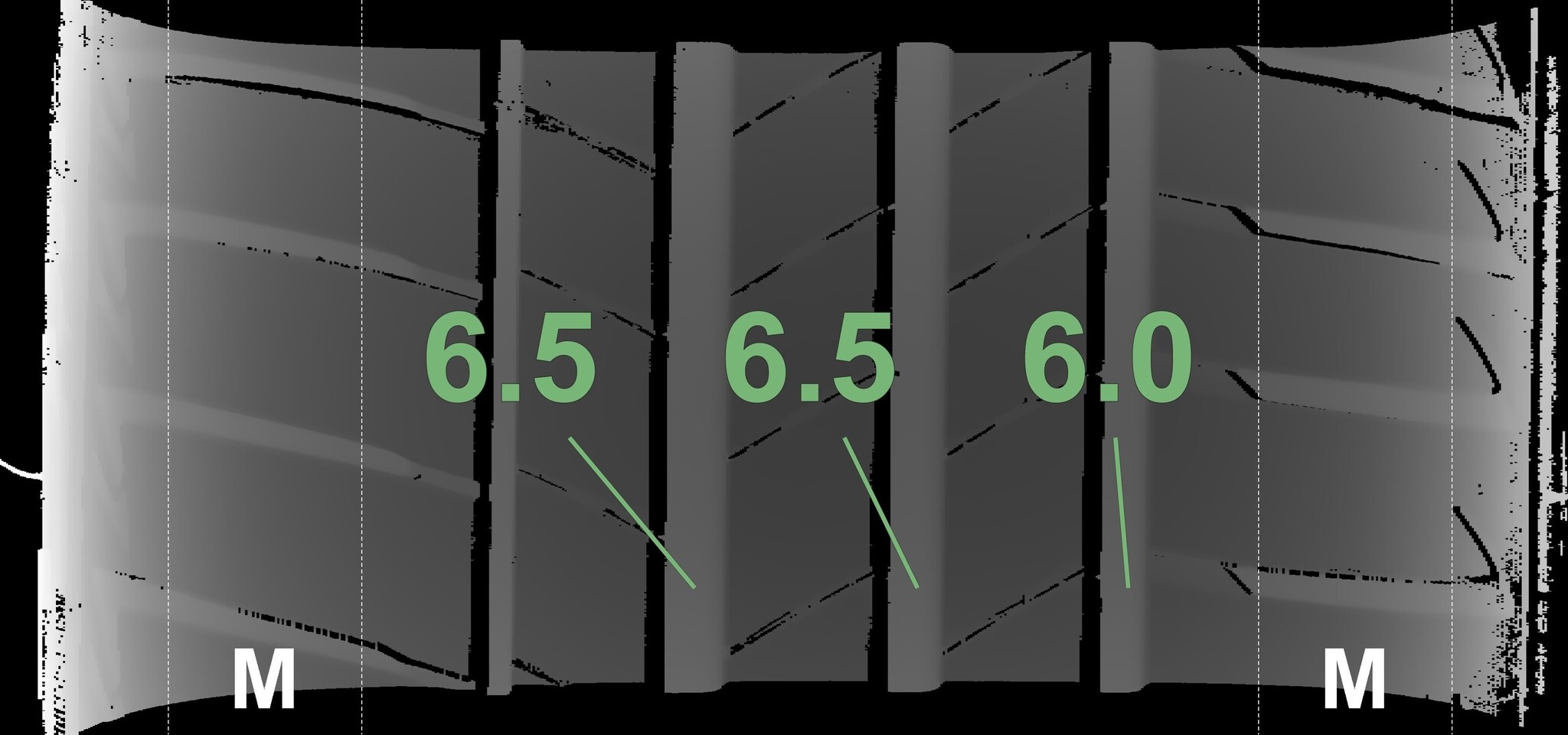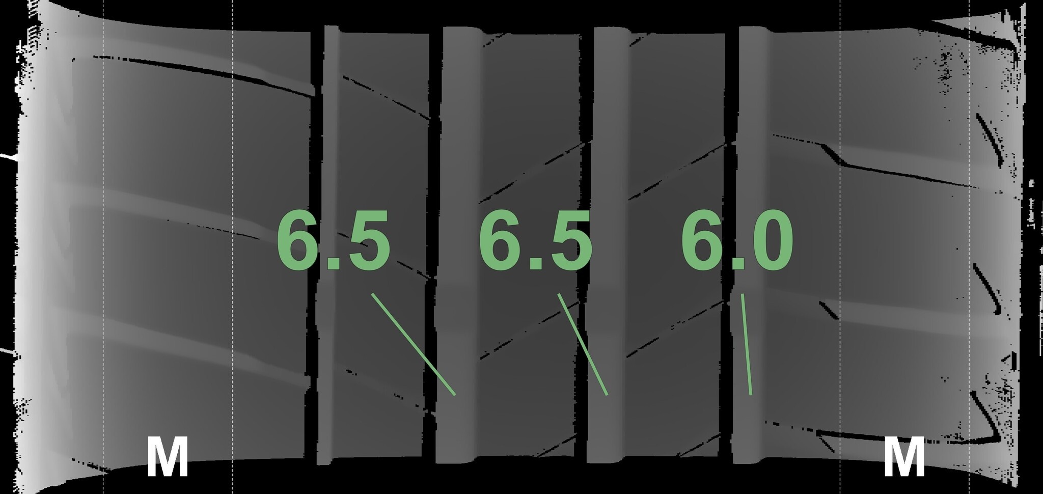 Die gemessenen Profiltiefen und Details zu den Felgen sind oben abgebildet.
