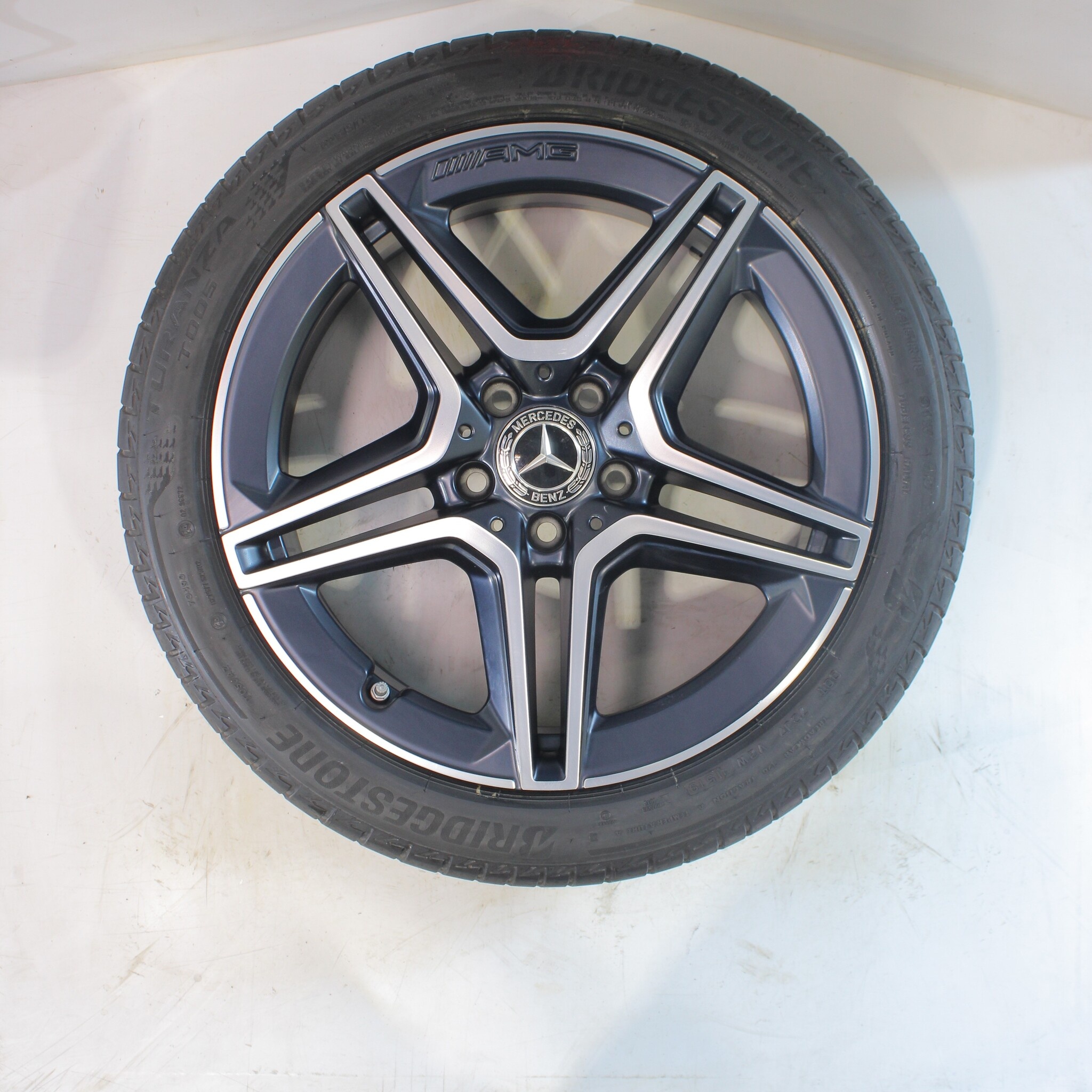 Original Mercedes Radsatz, Styling 18-Zoll-Felgen mit Bridgestone TURANZA T005 Sommerkompletträdern. Diese Felgen sind Original Mercedes Markenfelgen und geeignet für: Mercedes A B CLA Klasse W177 C118 W247.