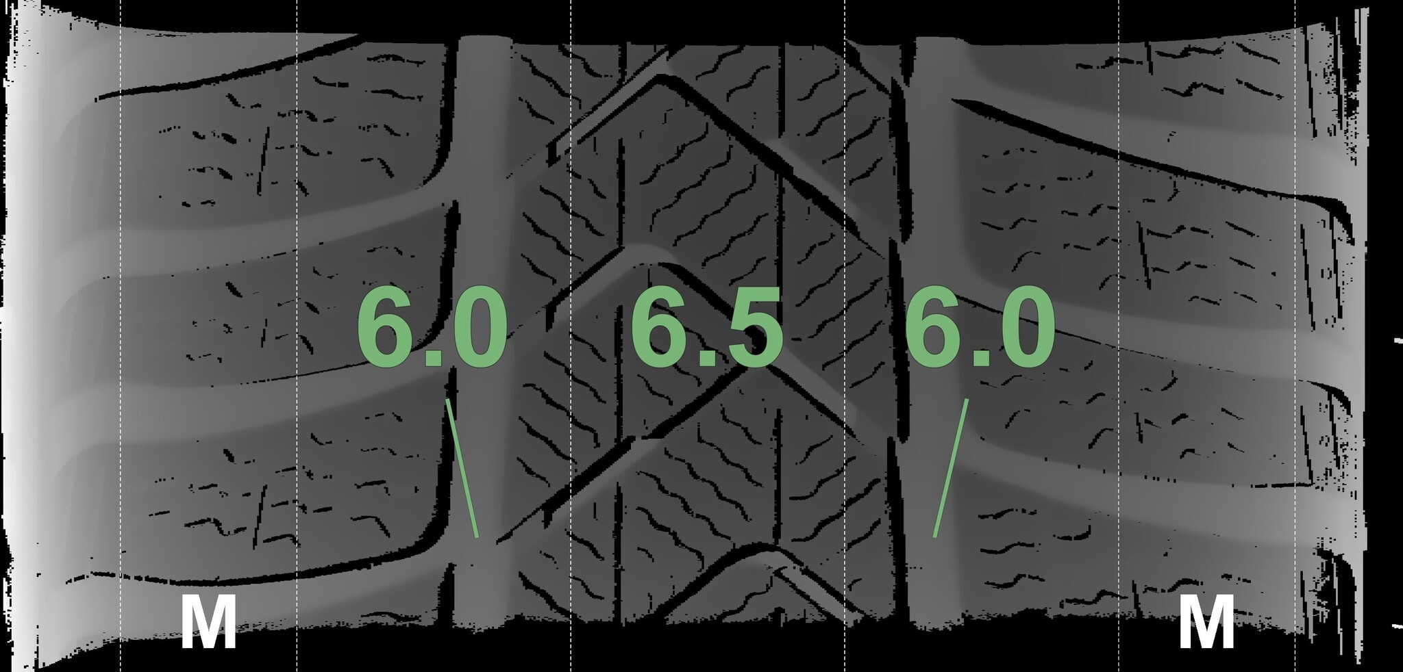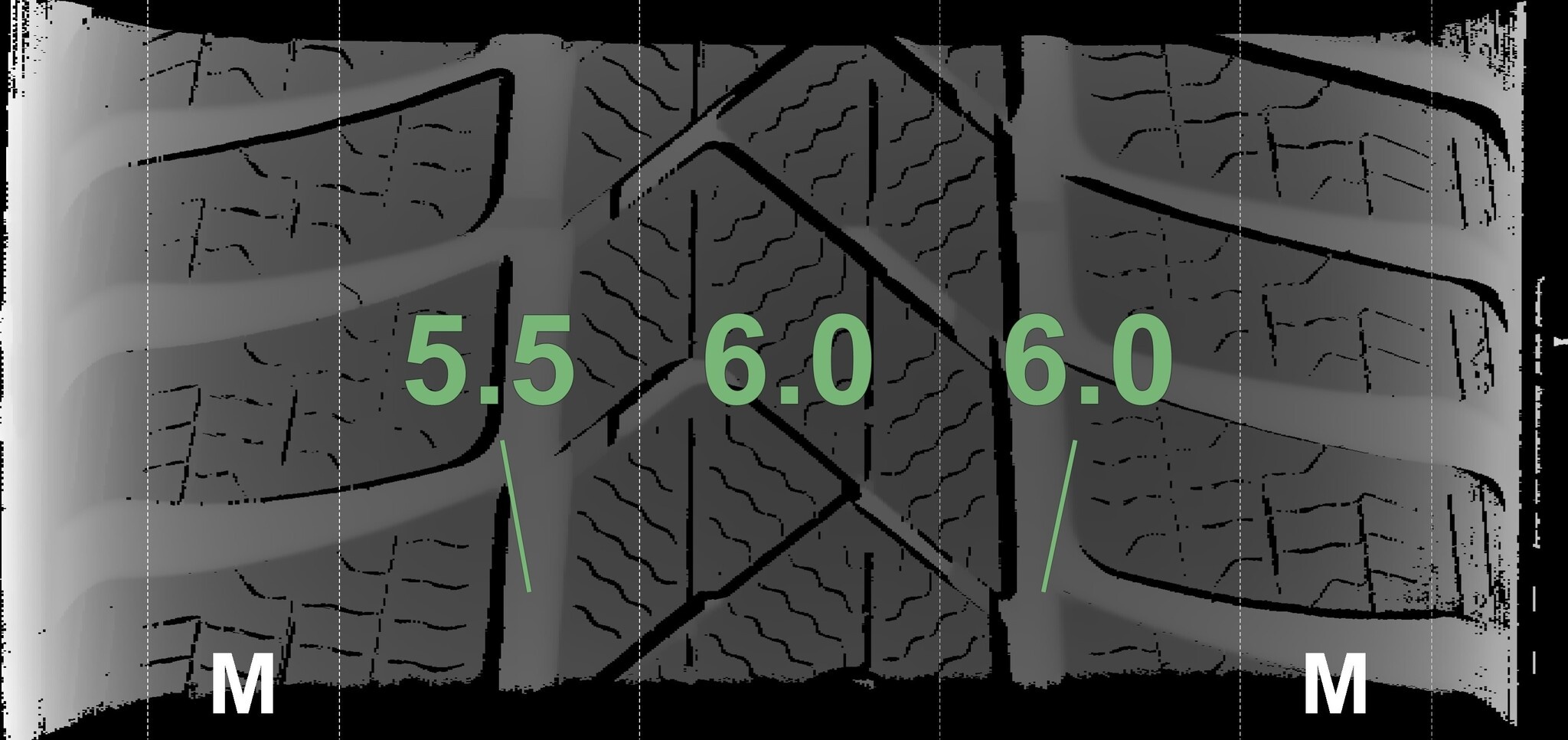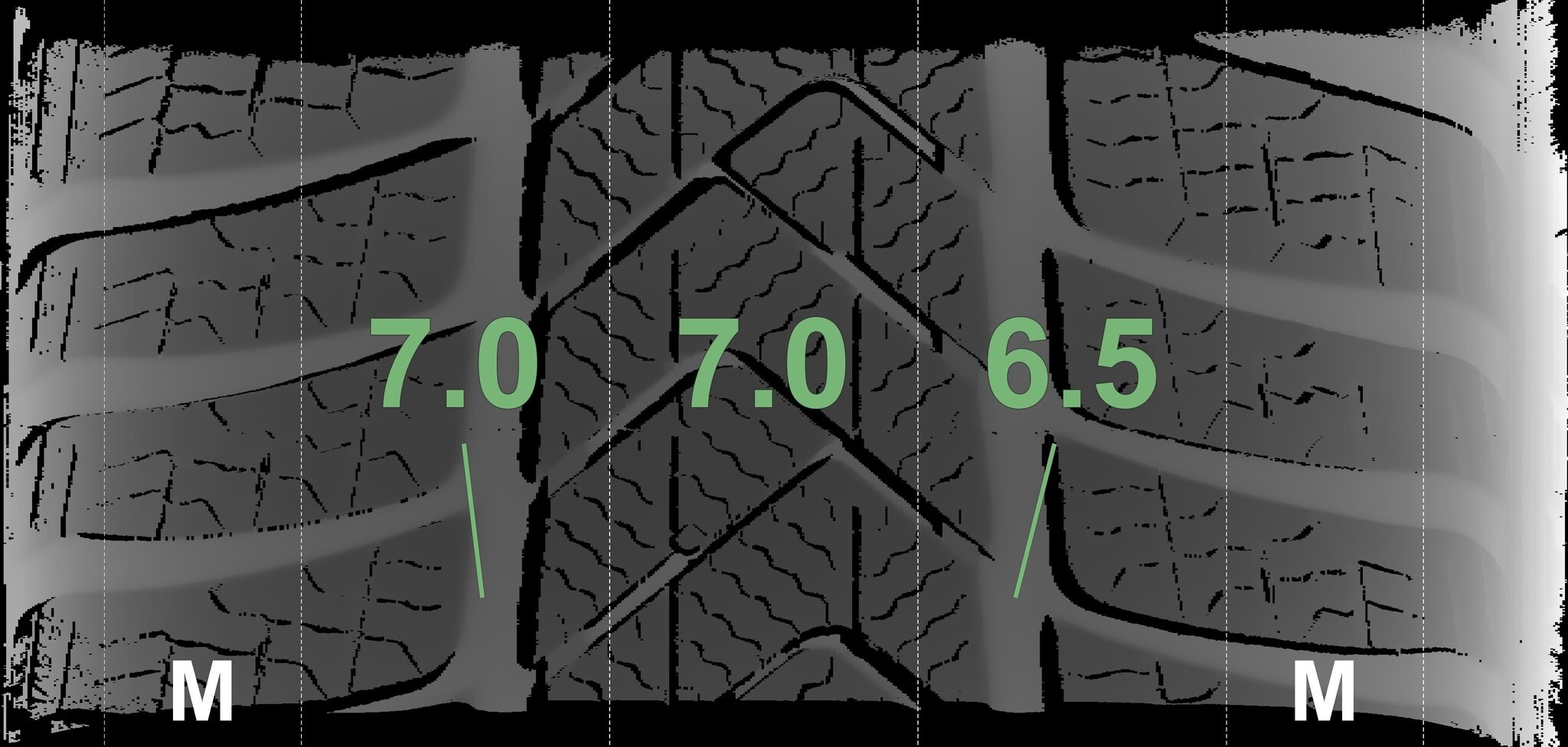 Die gemessenen Profiltiefen und Details zu den Felgen sind oben abgebildet.