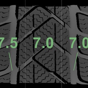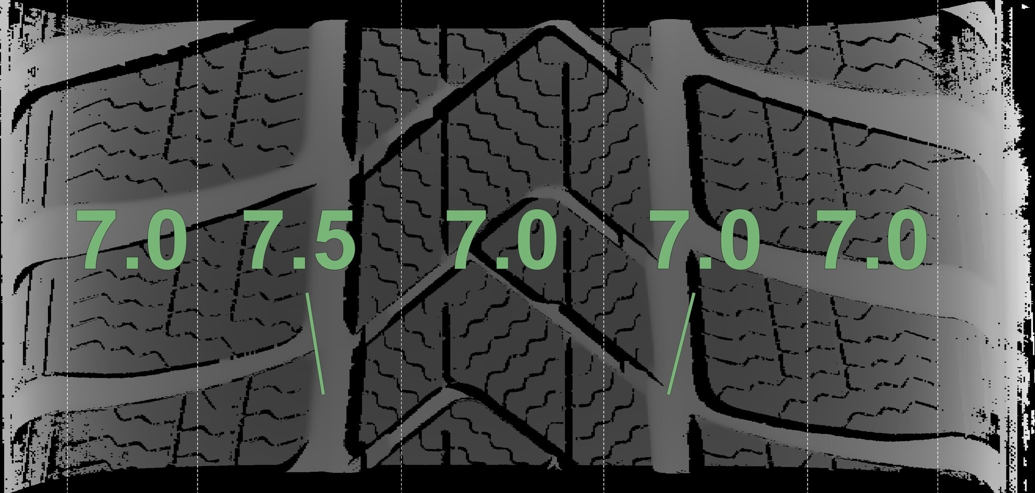 | Zustand | Profiltiefe | DOT | Vorderachse Links | Neu | 7,0 mm | 2822 |