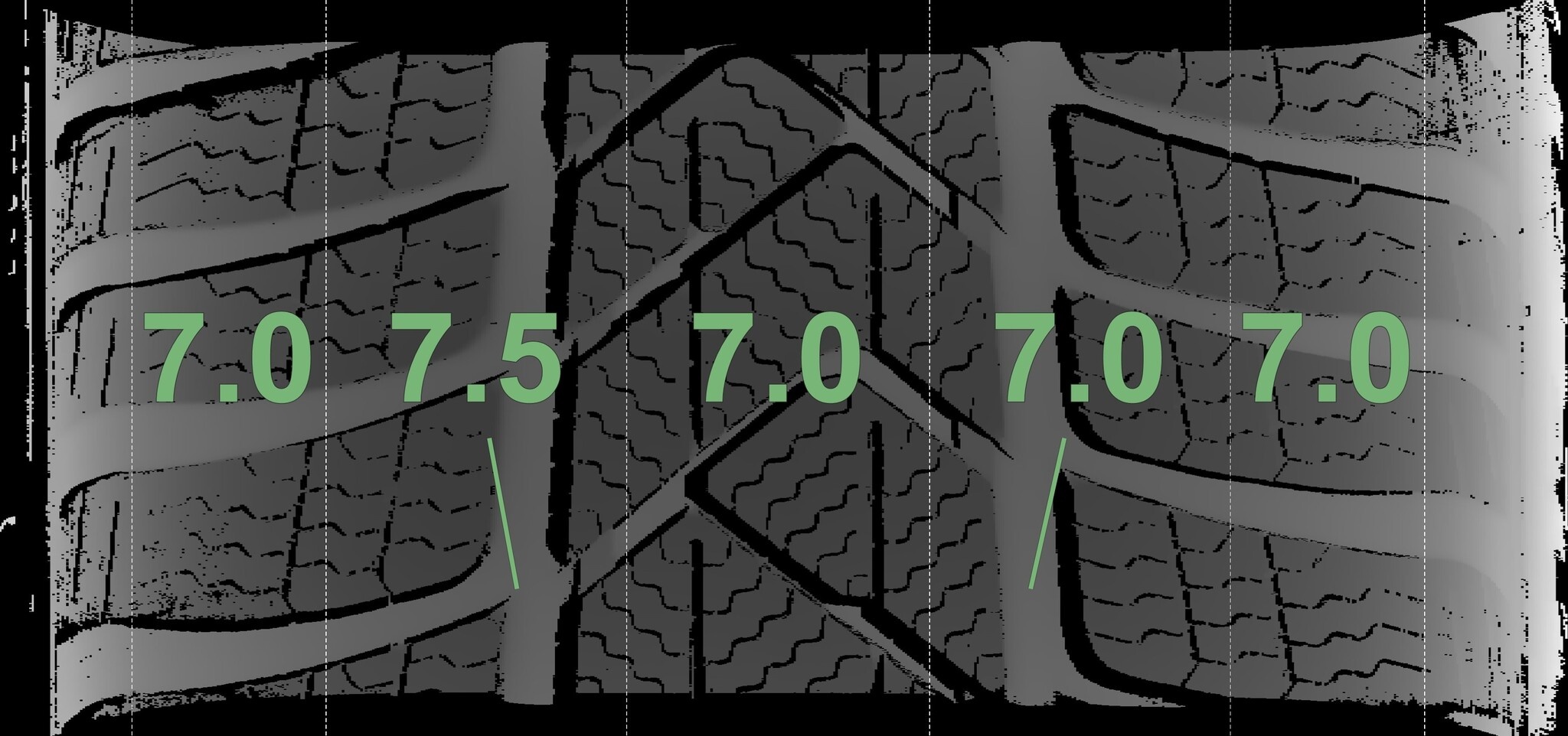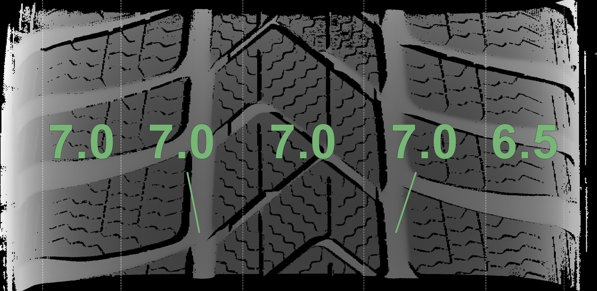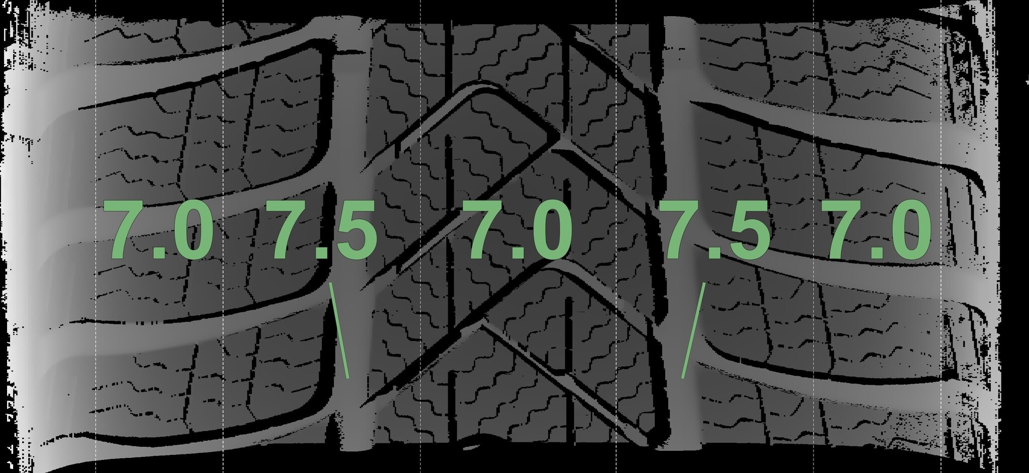 Die gemessenen Profiltiefen und Details zu den Felgen sind oben abgebildet.