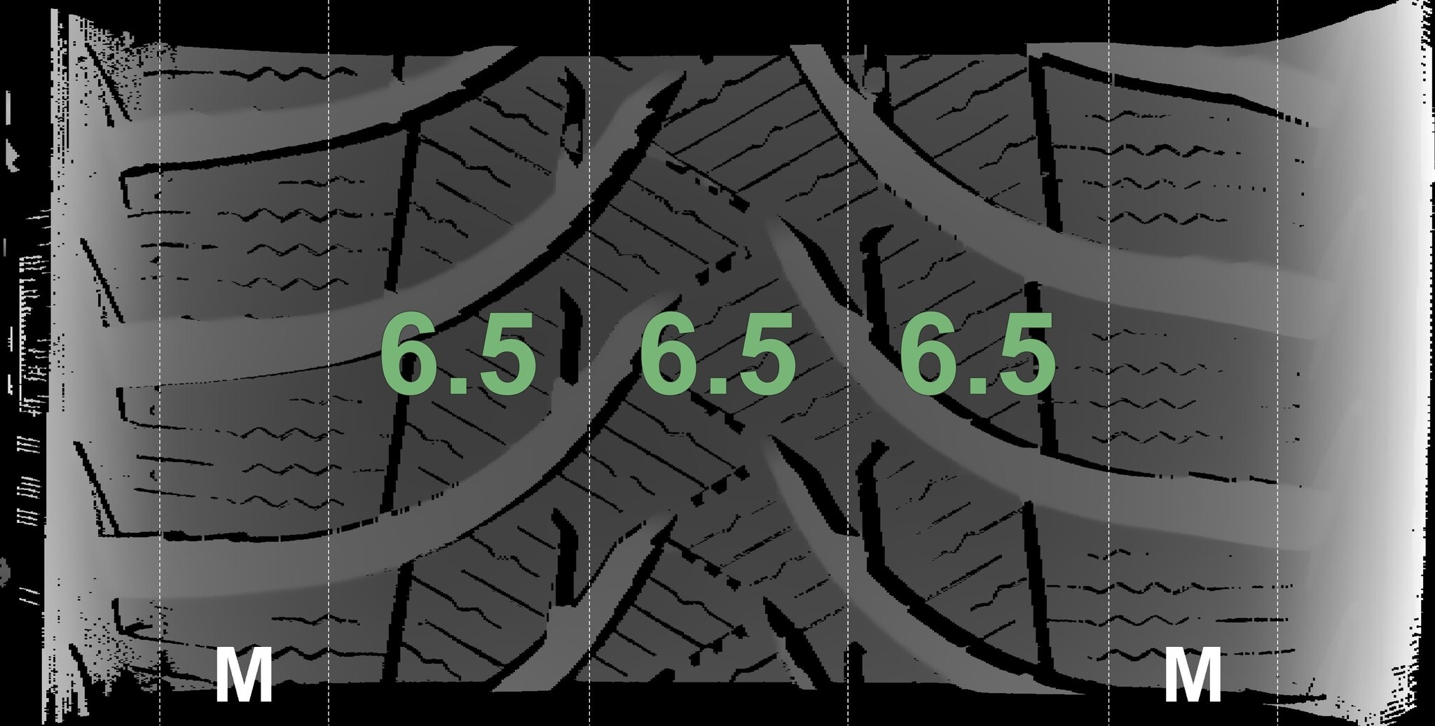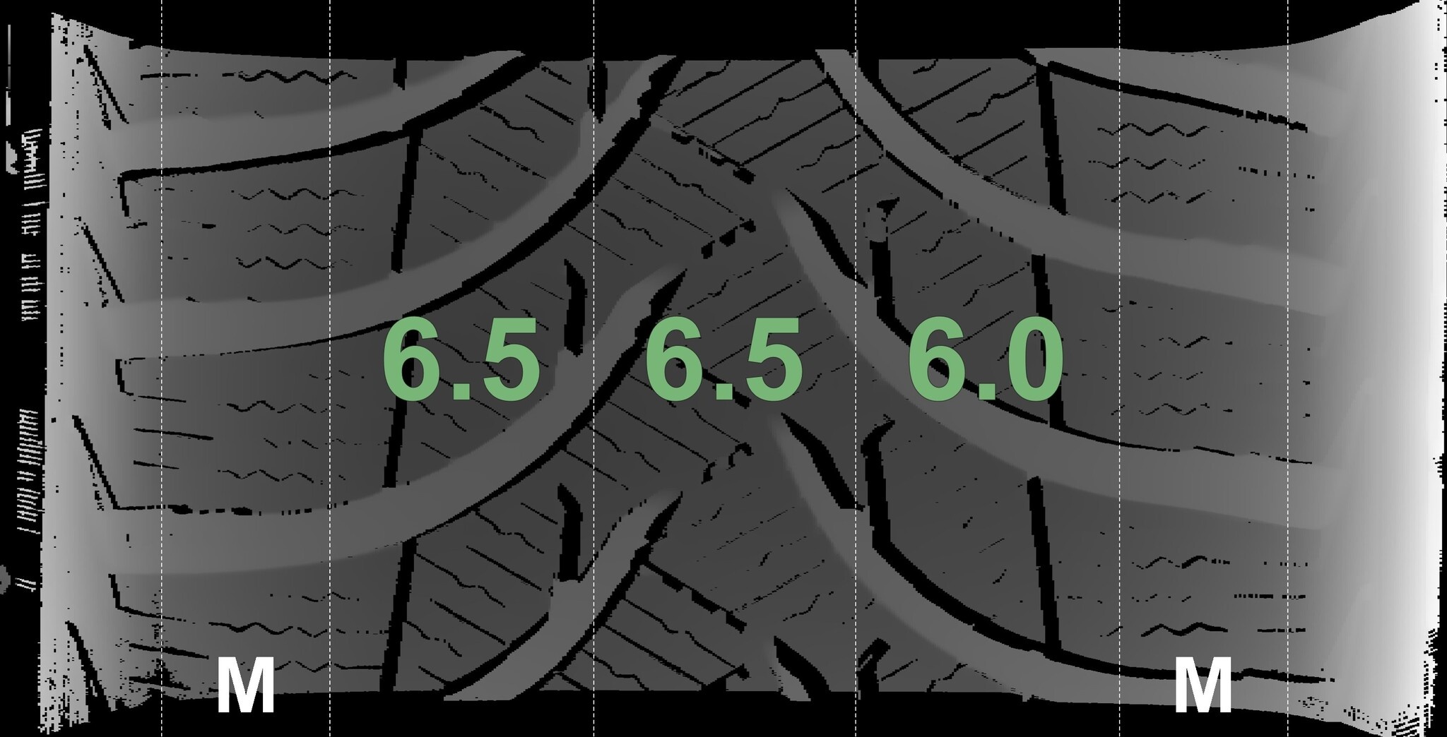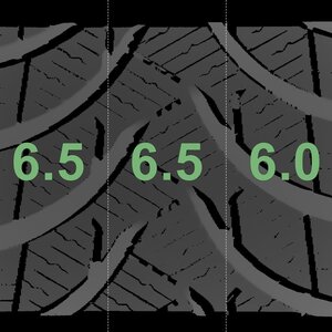 | Zustand | Profiltiefe | DOT | Vorderachse Links | Gebraucht | 6.8 mm | 2916 |