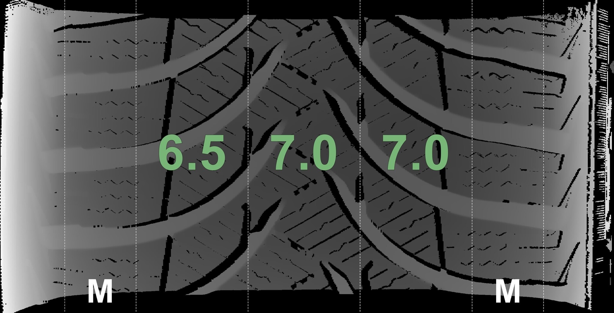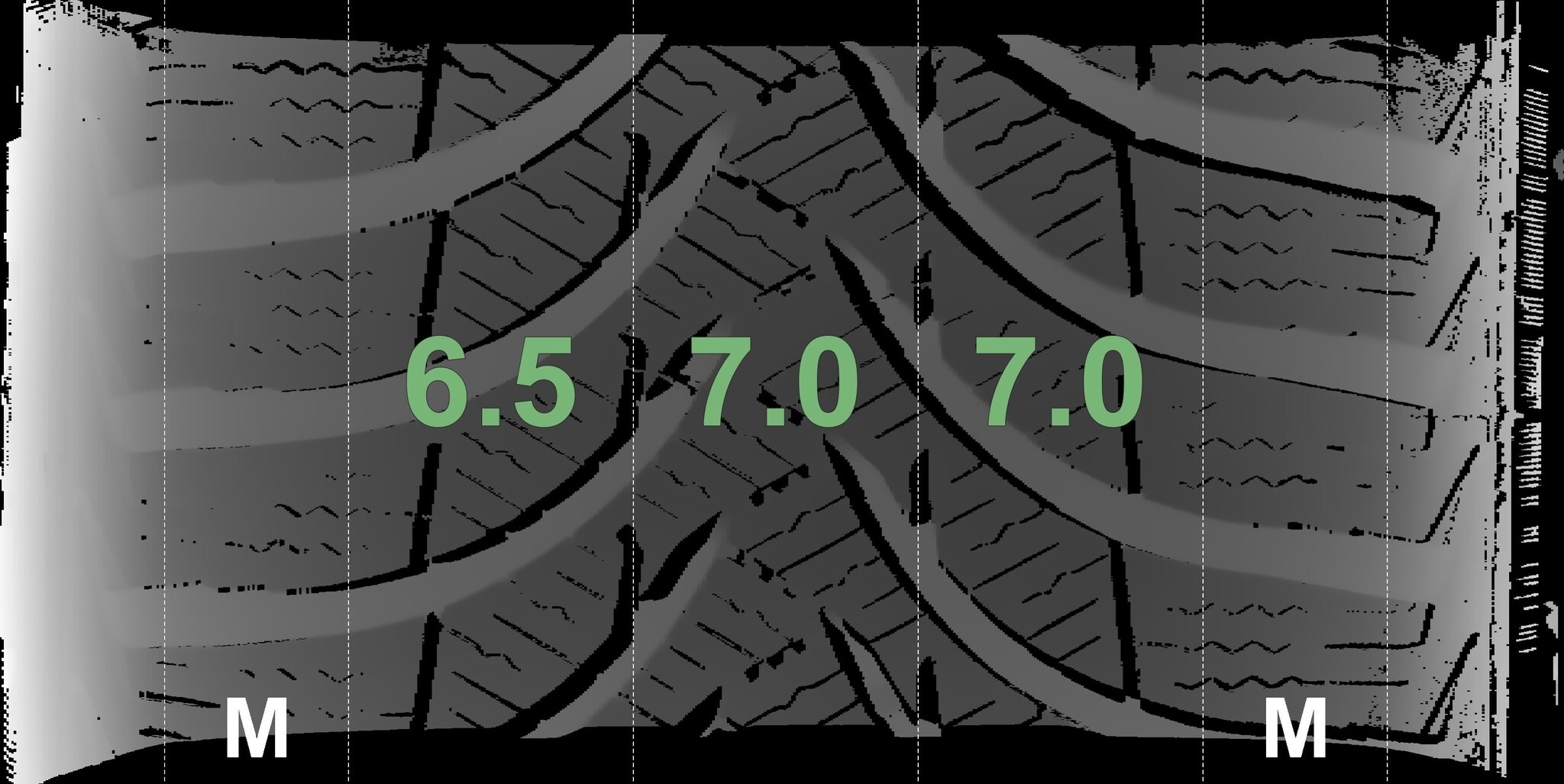 Die gemessenen Profiltiefen und die Details der Felgen sind oben aufgeführt.
