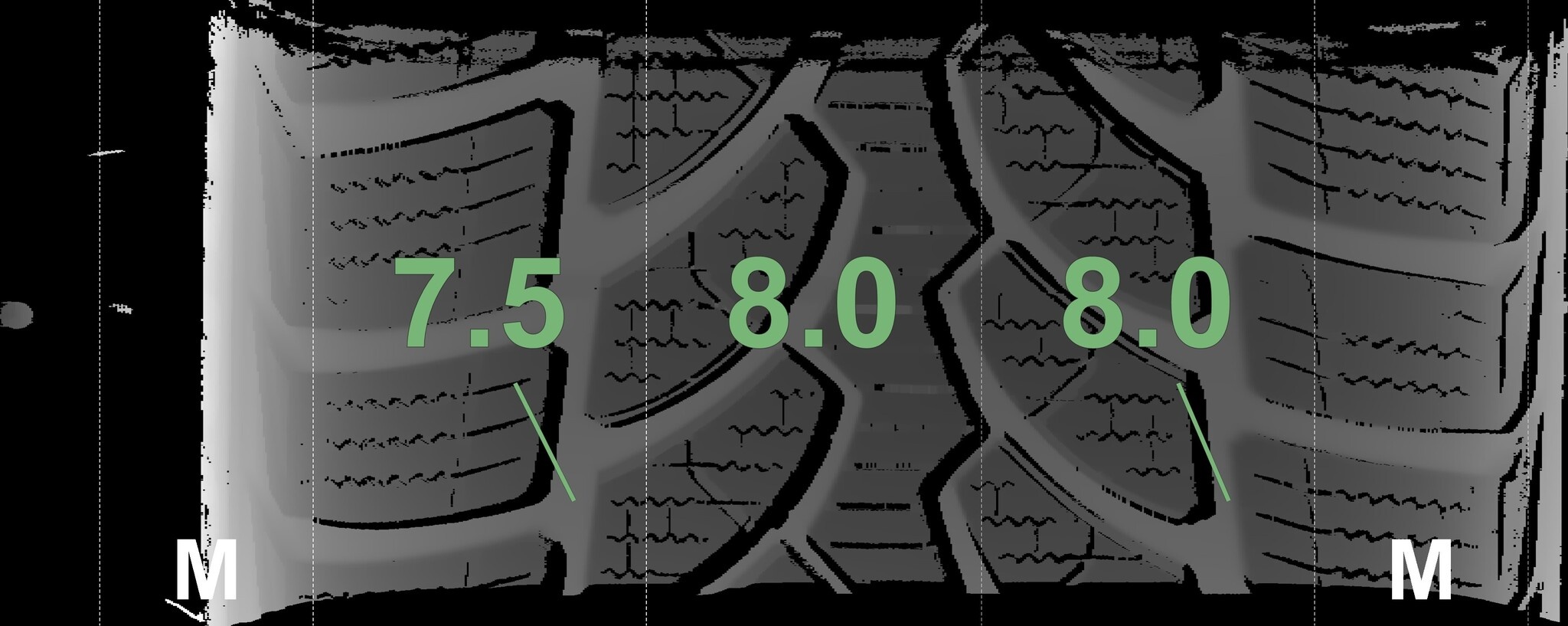 | Zustand | Profiltiefe | DOT | Hinterachse Links | Gebraucht | 8.0 mm | 4218 |