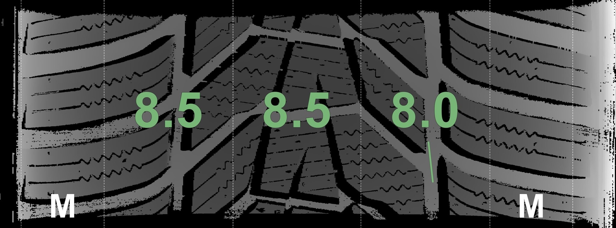Zustand | Profiltiefe | DOT | Vorderachse Links | Neu | 8,0 mm | 1825 |